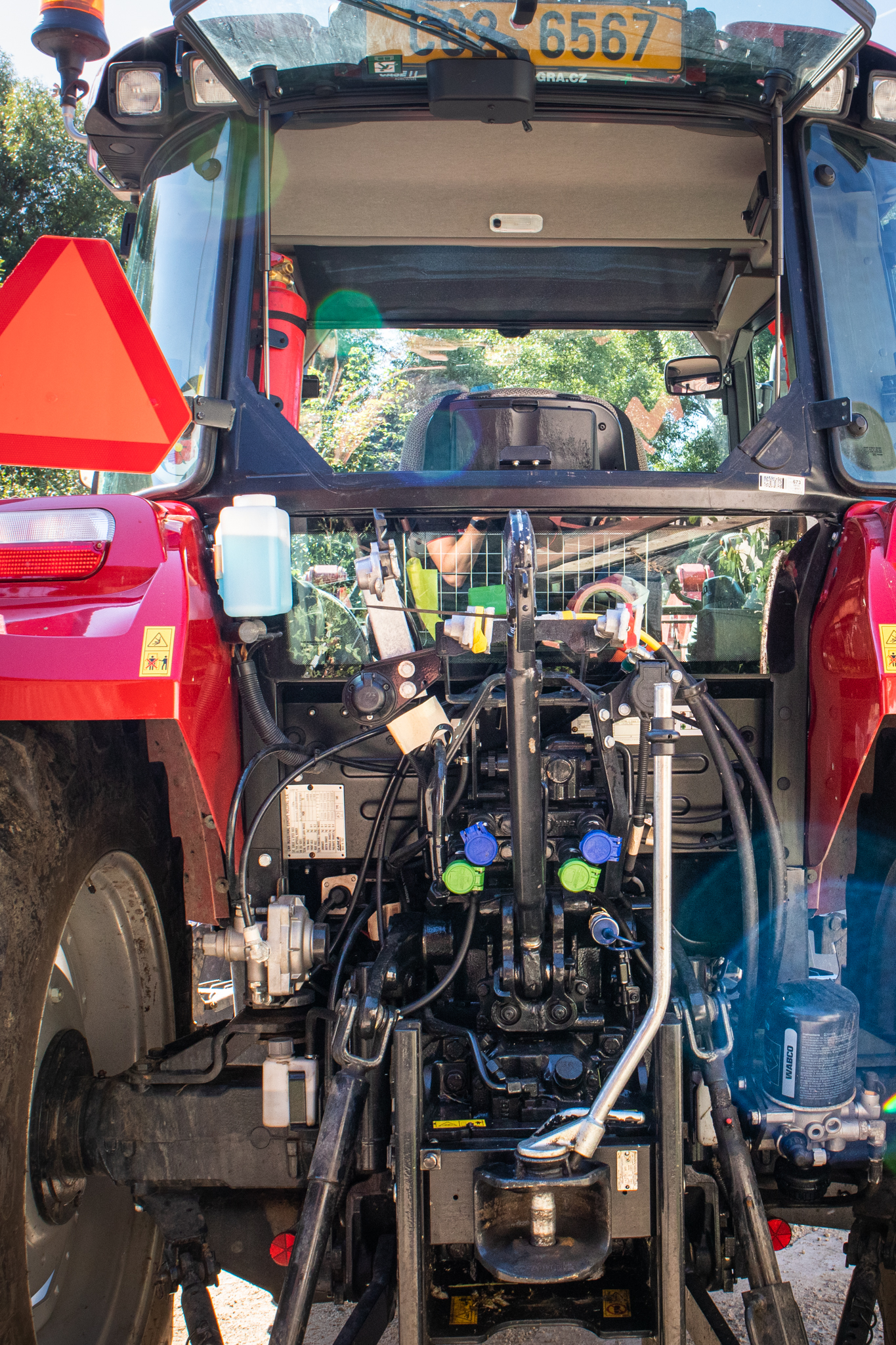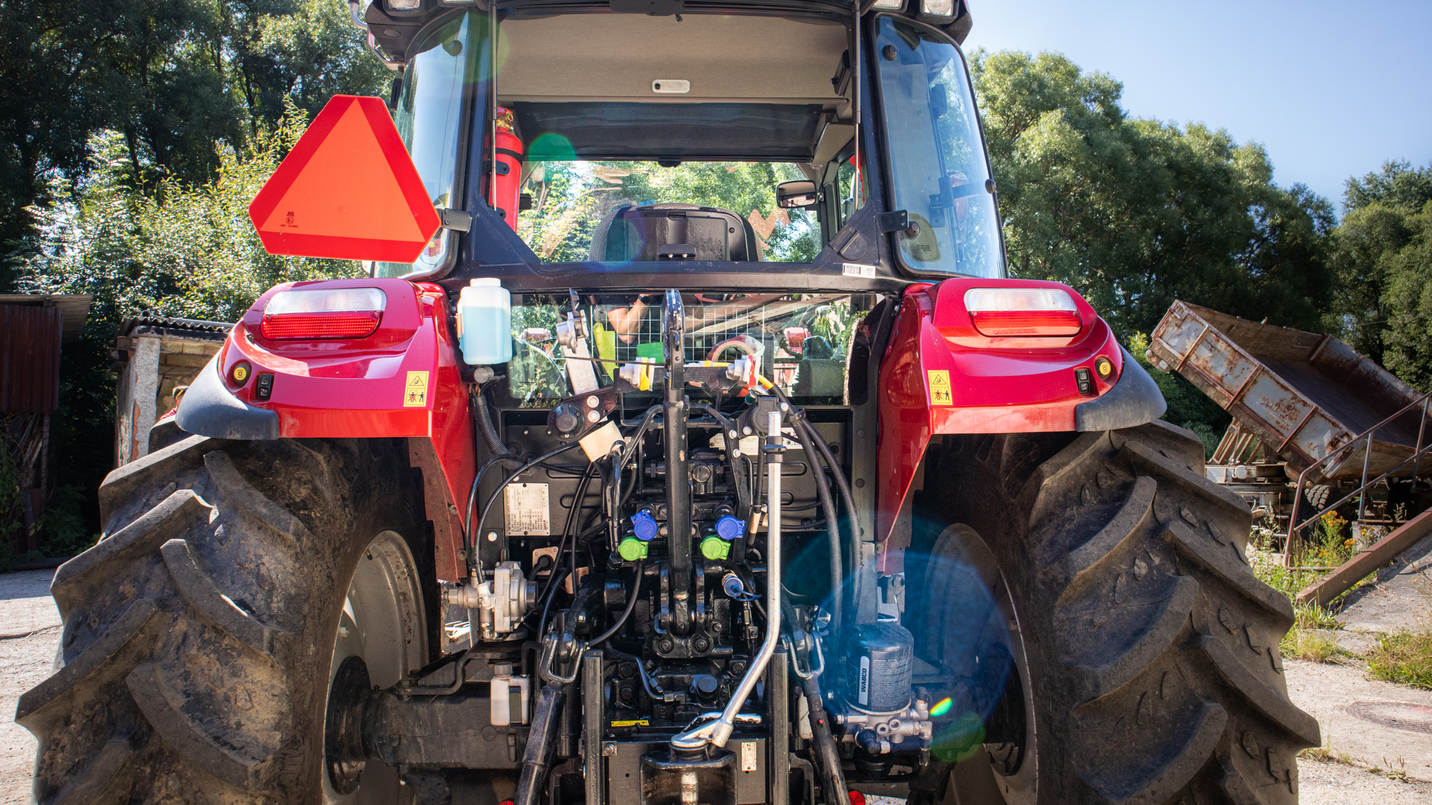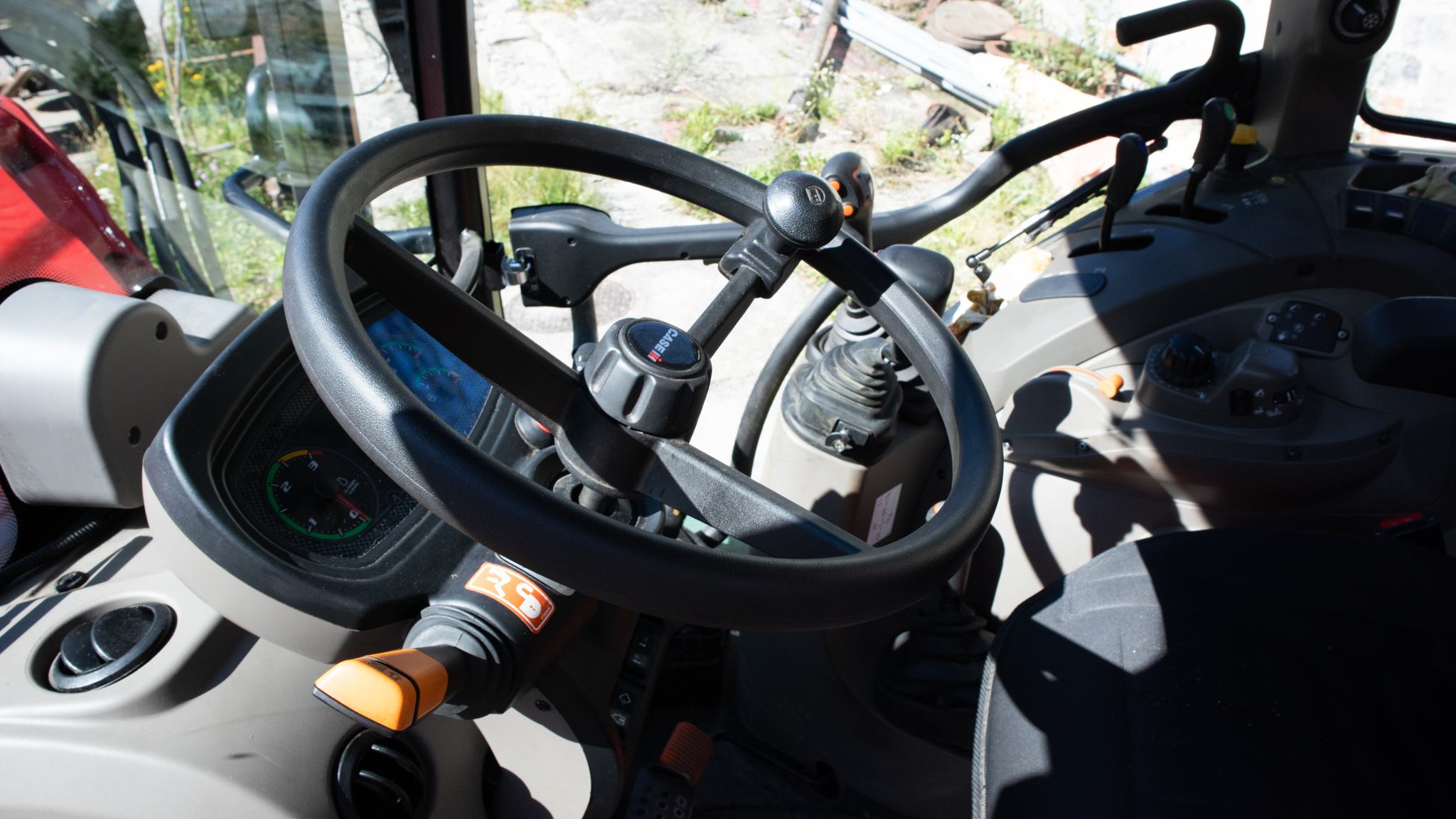 Kabina nového Farmallu je komfortní, klimatizovaná s vzduchově odpruženou sedačkou. Řidič si pochvaluje i sedačku spolujezdce: “Na svoz komunálu většinou jezdíme ve dvou. Je dobré, že druhá sadačka není provizorní, je slušná a nepřekáží.“ Právě sedačka spolujezdce nebývá v téhle kategorii traktorů standardem.