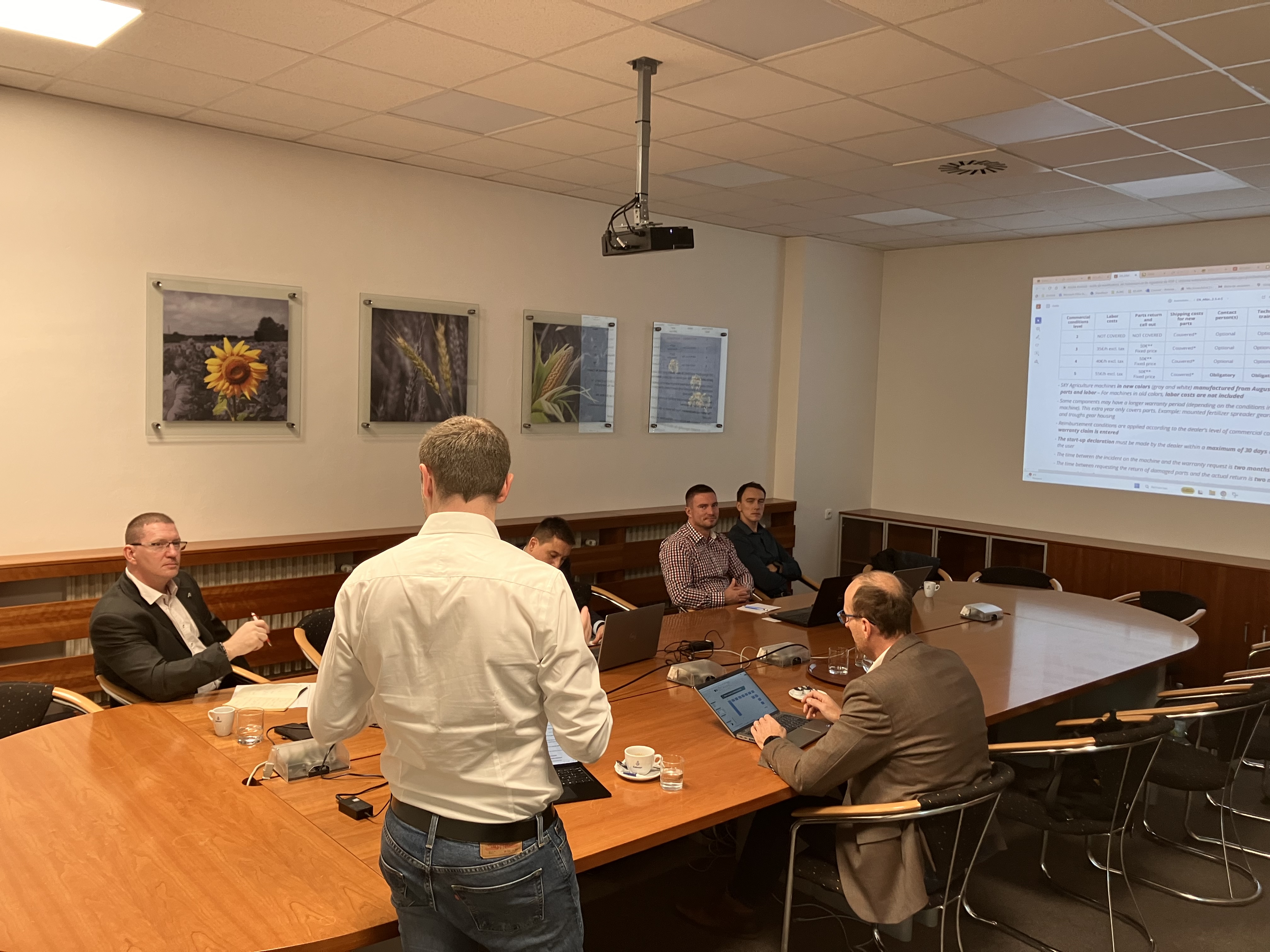 Zástupci obou firem pracovali společně na plánech na následující rok 2024. Detailně jsme si popsali jednotlivé kroky k zajištění hladké sezóny pro zákazníky, ať už z pohledu dostupnosti náhradních dílů či samotných strojů, továrních záruk, zaškolení obsluh a poprodejní péče nebo i předvádění strojů a odborných seminářů. Výsledkem byl společný komplexní plán na nadcházející sezónu.