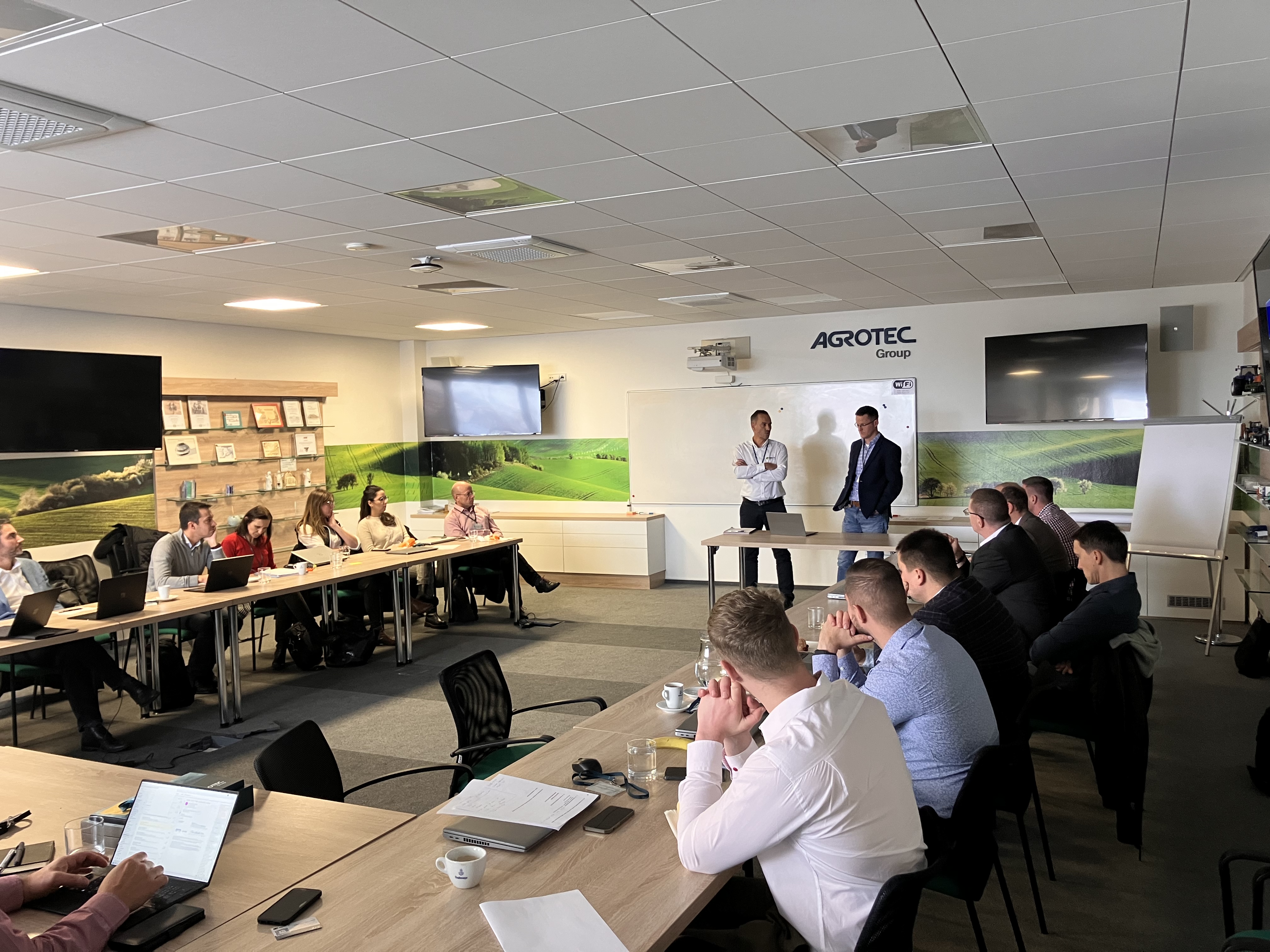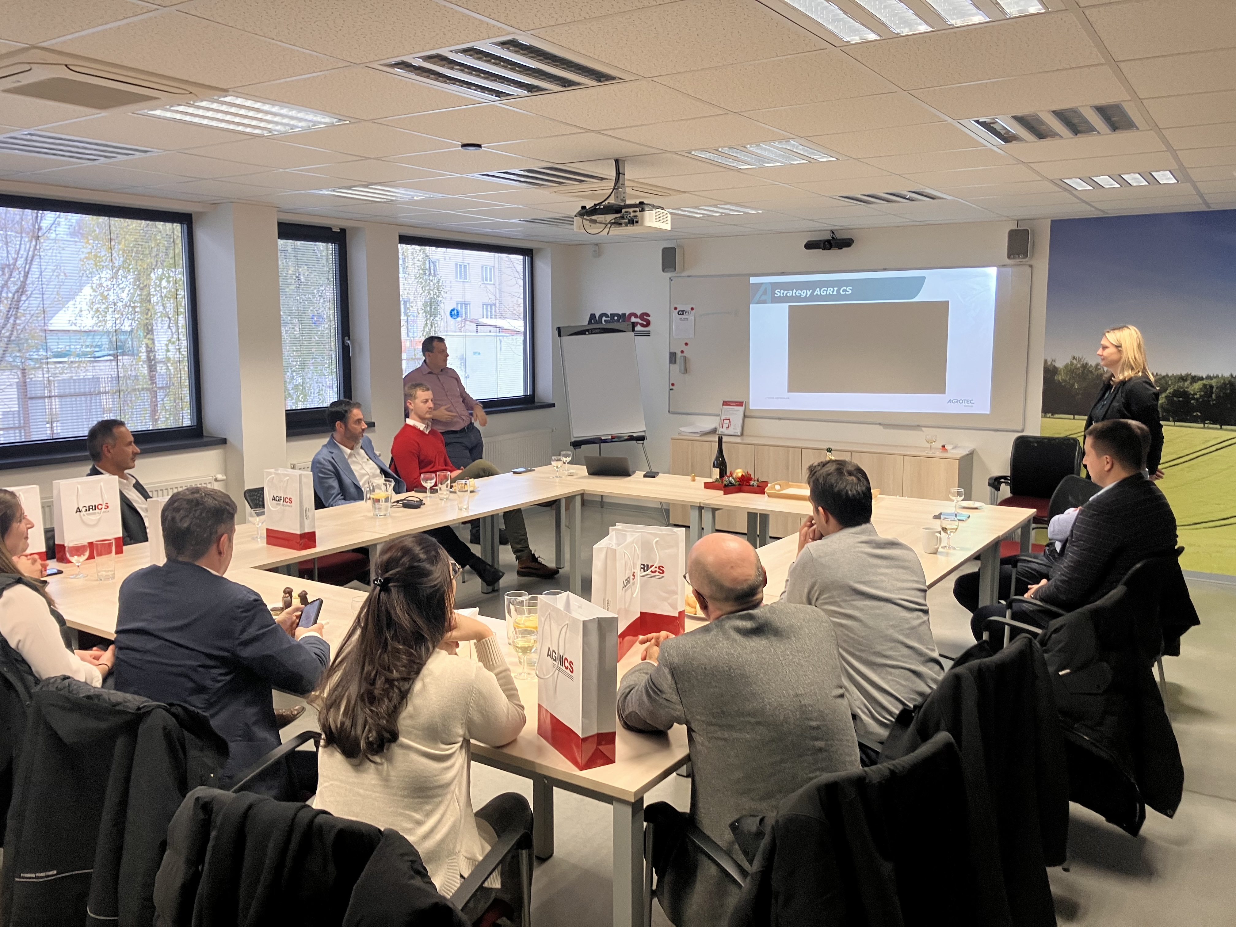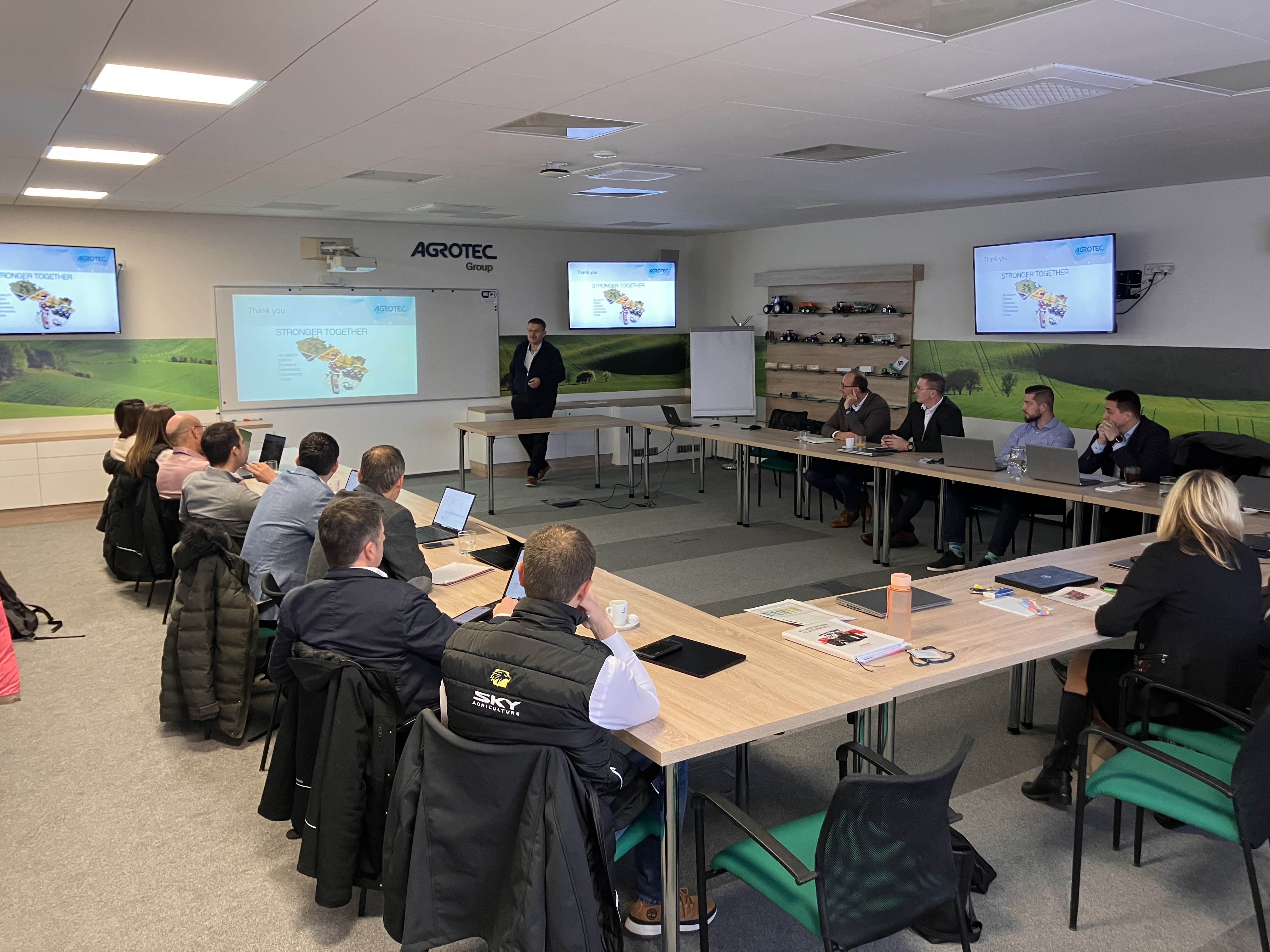Do Hustopečí dorazilo vedení firmy SKY Agriculture, vedoucí obchodu, servisu, náhradních dílů, logistiky a marketingu. Z české a slovenské strany se účastnilo vedení společnosti AGROTEC Group a AGRI CS, vedoucí a zástupci technického oddělení Atech, vedoucí náhradní dílů Aparts, produkt manažer pro ČR a SK, marketingové oddělení a vedoucí prodeje a vedoucí servisů AGRI CS. Po společné úvodní prezentaci, kde nás všechny přivítal generální ředitel skupiny AGROTEC Group pan Martin Rada, následovala nejdůležitější část dne – pracovní workshopy jednotlivých oddělení.