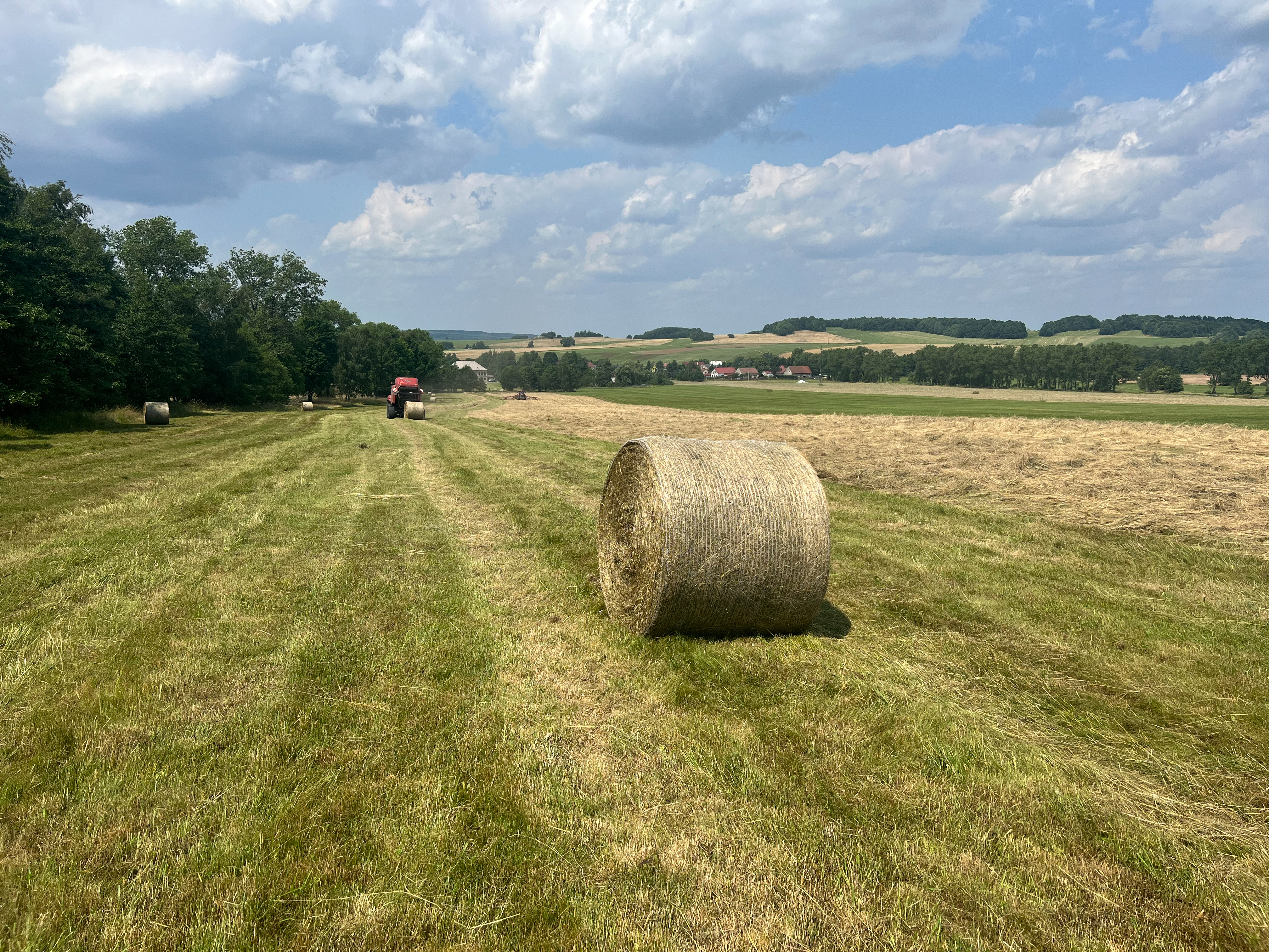 Spolumajitele pana Procházky a jeho syna jsme navštívili na začátku června v období, kdy je jejich největší, starostí, jakožto chovatele dobytka, sklízení sena. „Naše krávy krmíme senem nebo senáží a jsou celoročně venku. Máme asi 300 krav a k tomu jalovice, telata a býky. Ročně pro ně potřebujeme několik tisíc balíků sena,“ vysvětluje syn majitele Josef Procházka a dodává, že důležité je pro ně nejen množství, ale i kvalita sena.