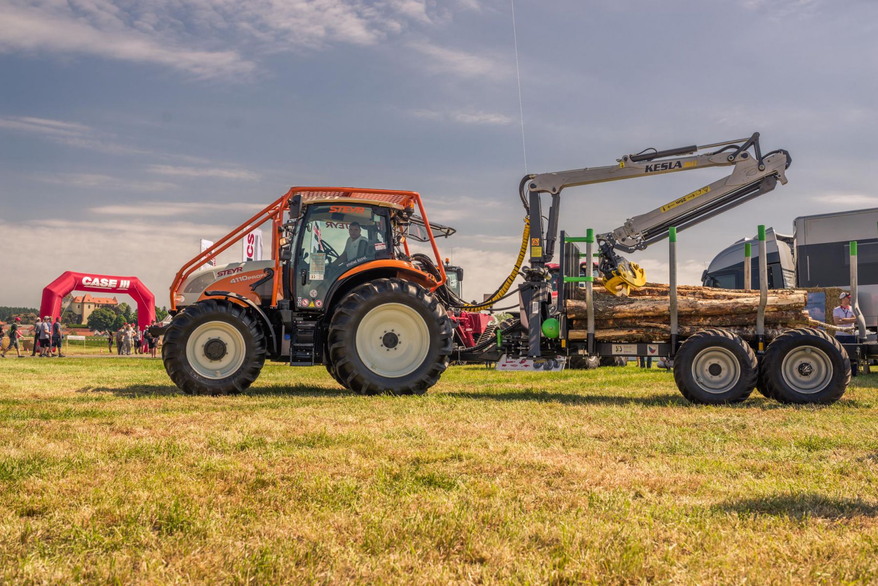Originální řešení představil STEYR hned ve dvou provedeních, kdy se při práci s vyvážečkou dřeva ukázal PROFI s originální lesnickou nástavbou a nechyběl taktéž speciálně upravený traktor.