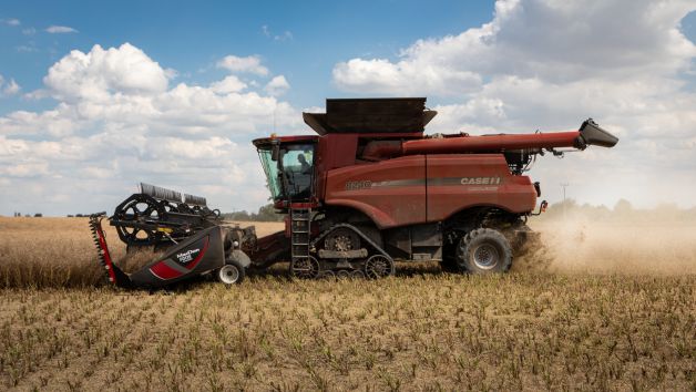 Posádka s kombajnem se pak přesunula do Strážnice, kde pokračovala sklizní řepky.