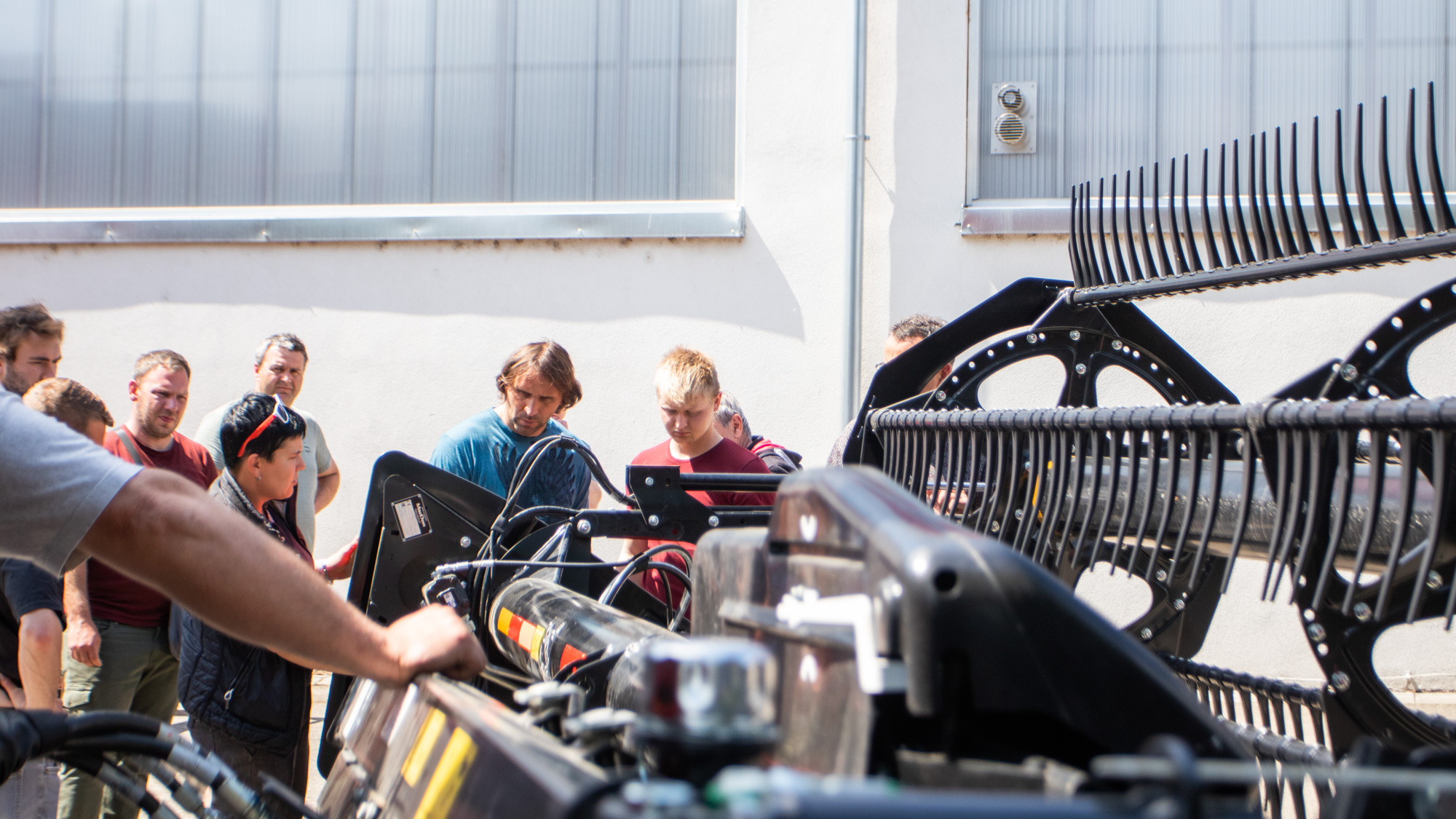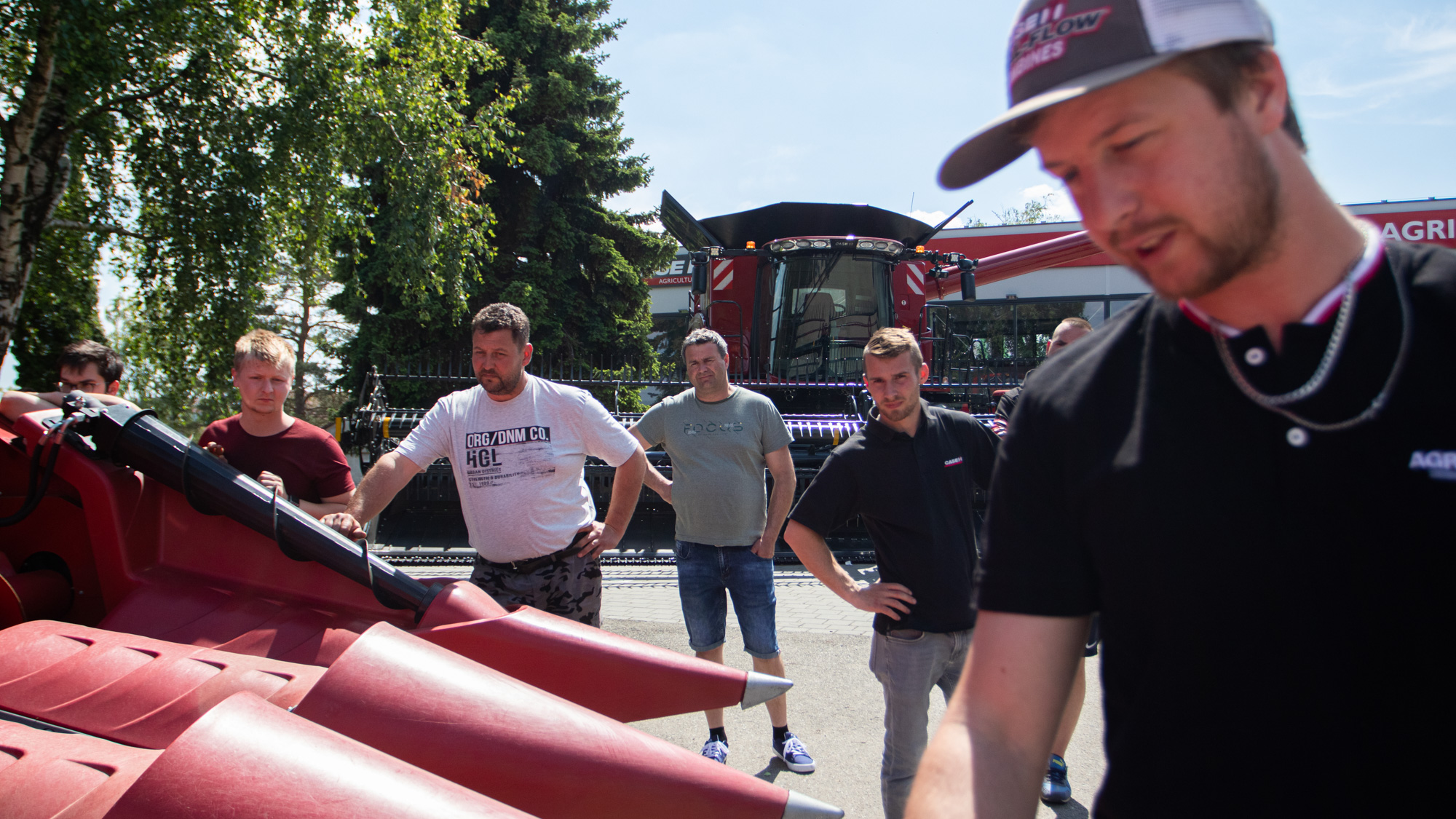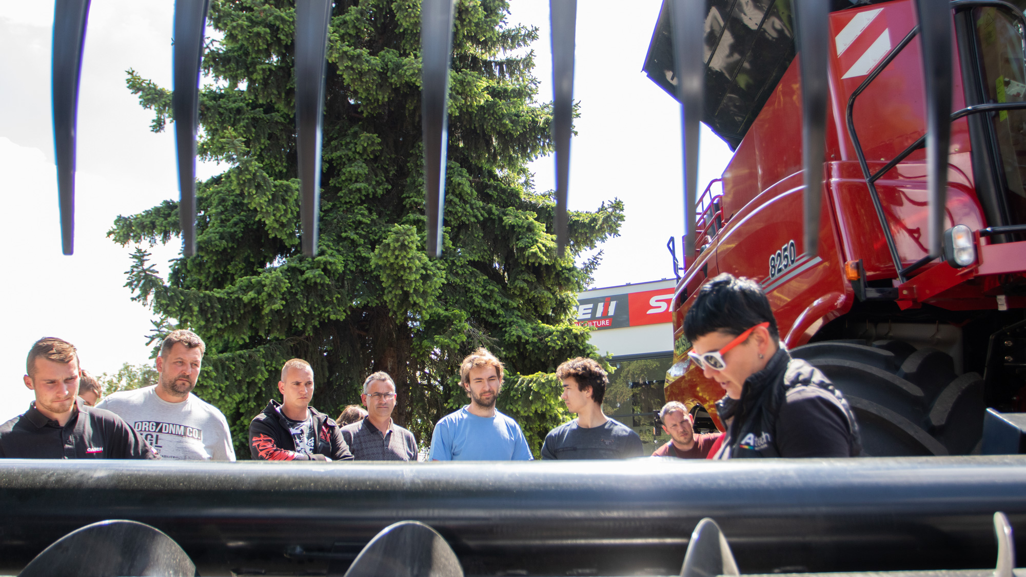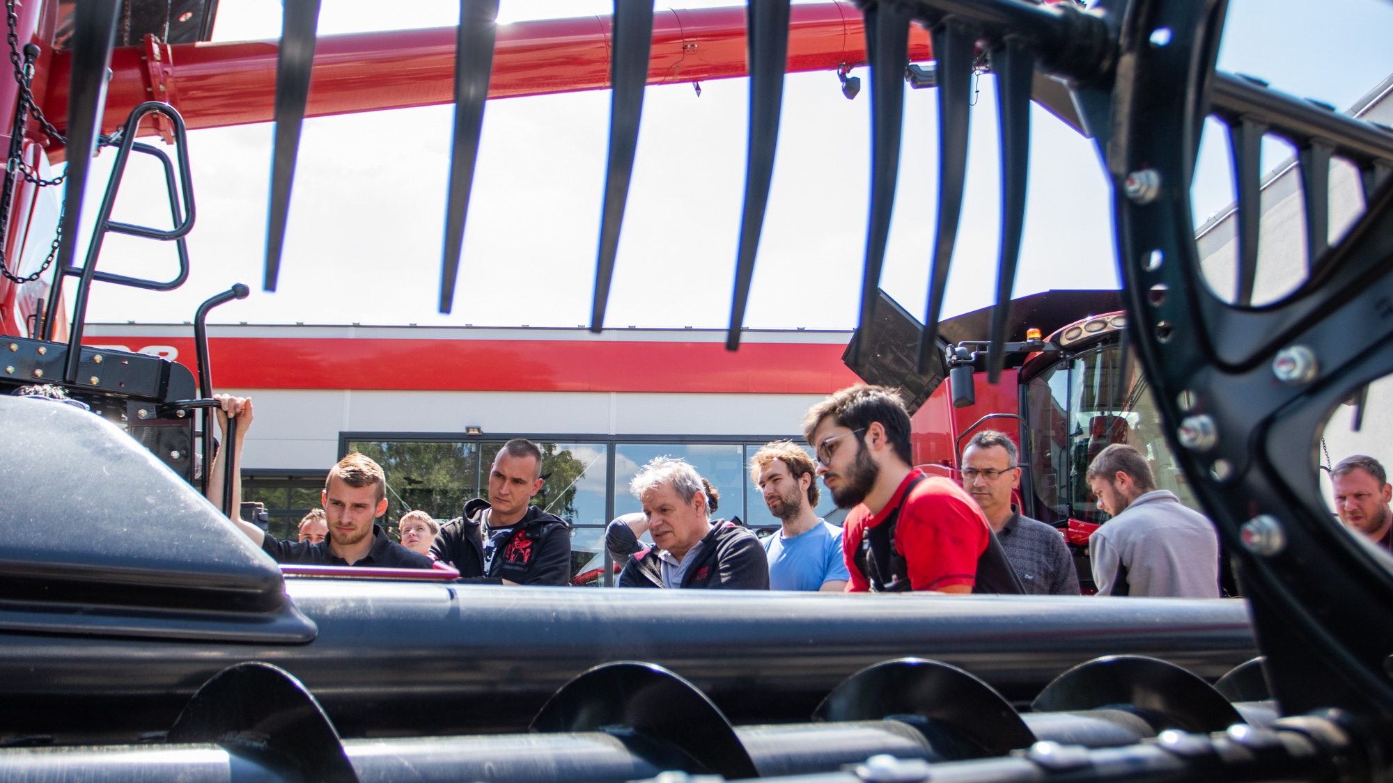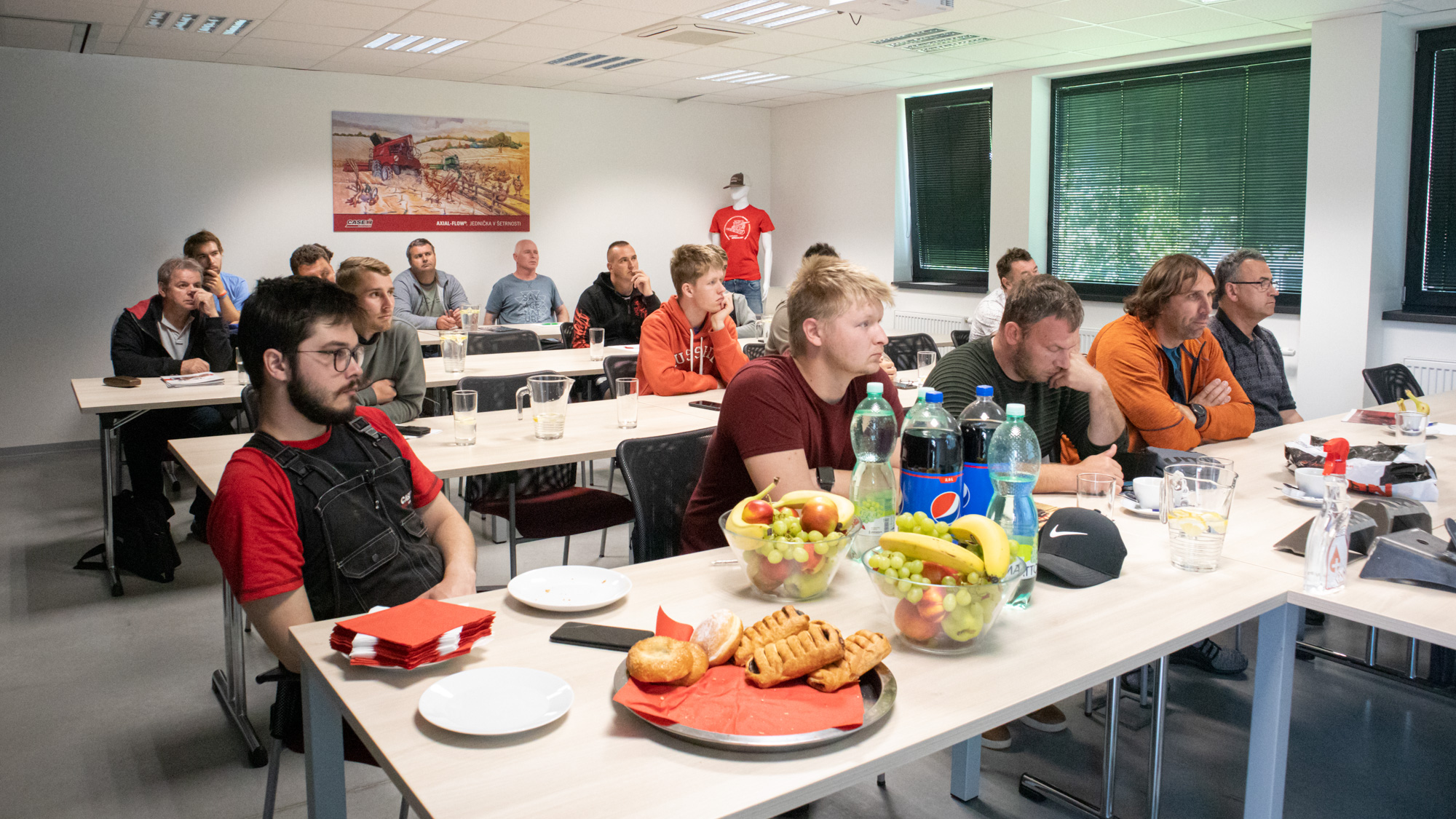 Školící den byl rozdělen na několik částí. Od teorie, jak se zrno vytírá, ovládání stroje, nastavení na jednotlivé plodiny, přes nastavení moderních systémů, prezentace praktické zkušenosti až po údržbu a přípravu stroje. Sklidit nepoškozené zrno bez ztrát je sen každého zemědělce, proto jsme se ve školení zaměřili i na to, jak eliminovat ztráty a kde je najít.