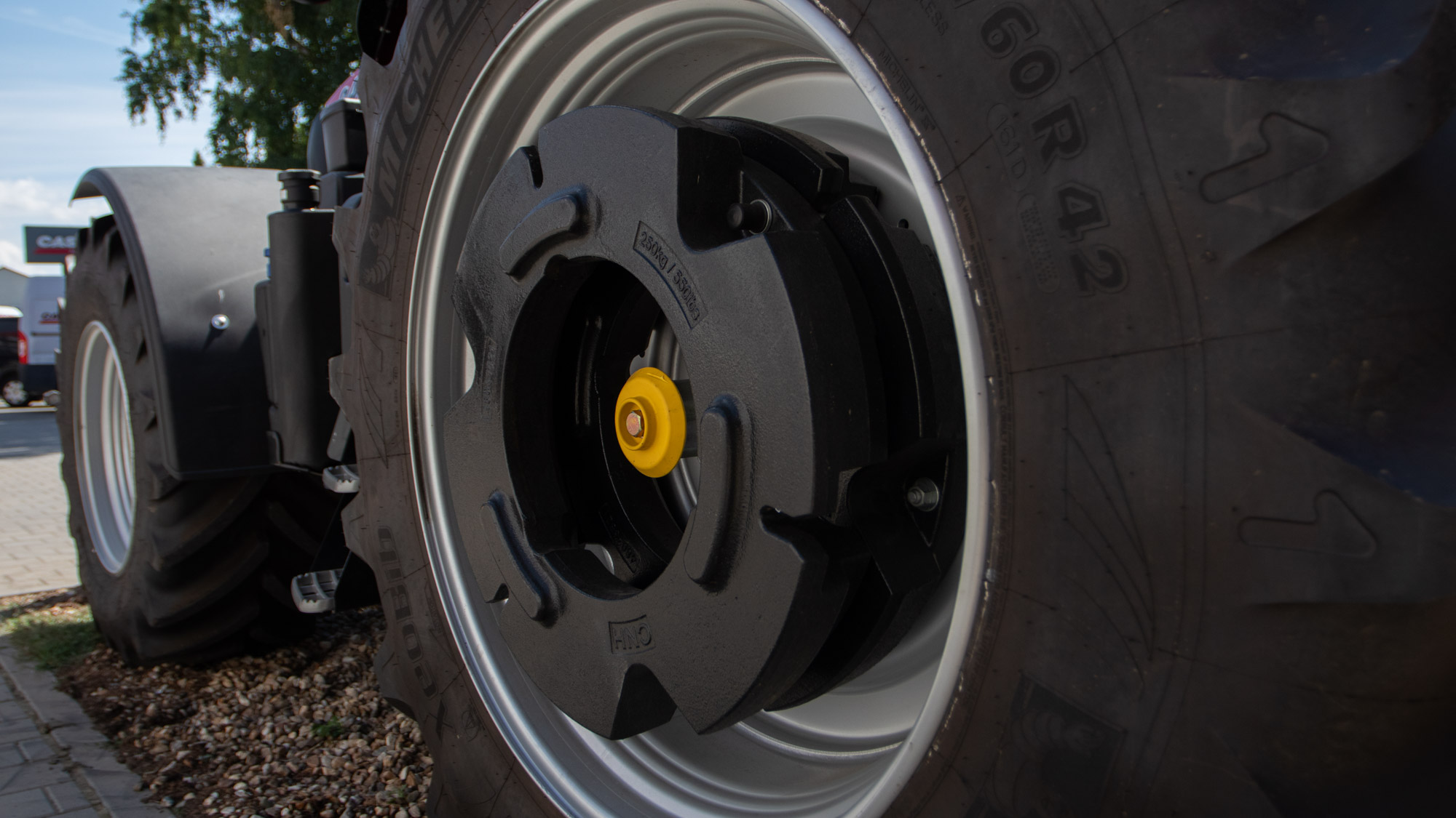 Závaží je blíže k tělu traktoru, má boční panely se šrafováním, pozičním osvětlením a směrovými světly. Díky němu váš traktor nikdo v noci a za snížení viditelnosti nepřehlédne.
