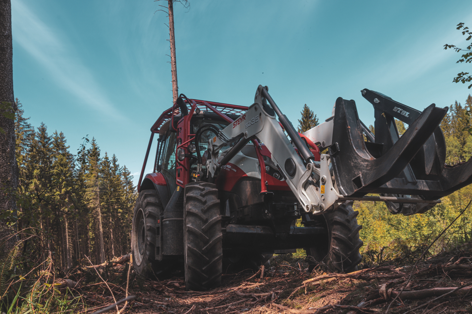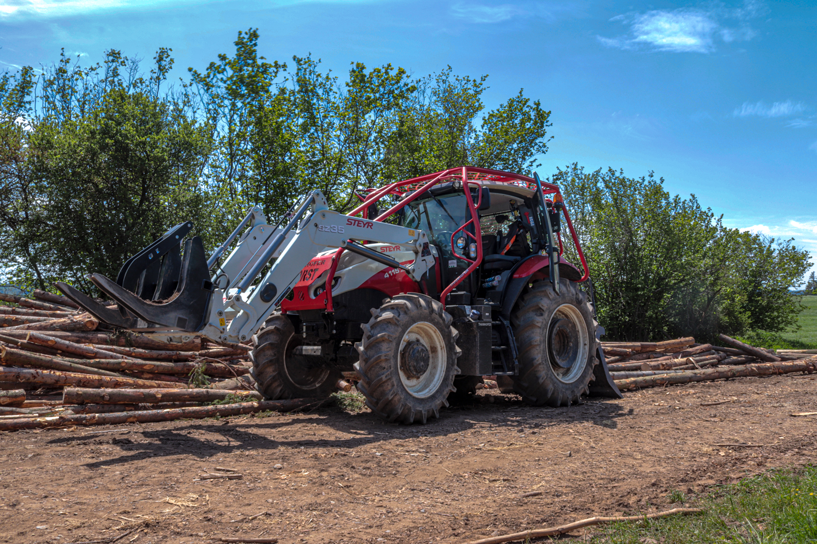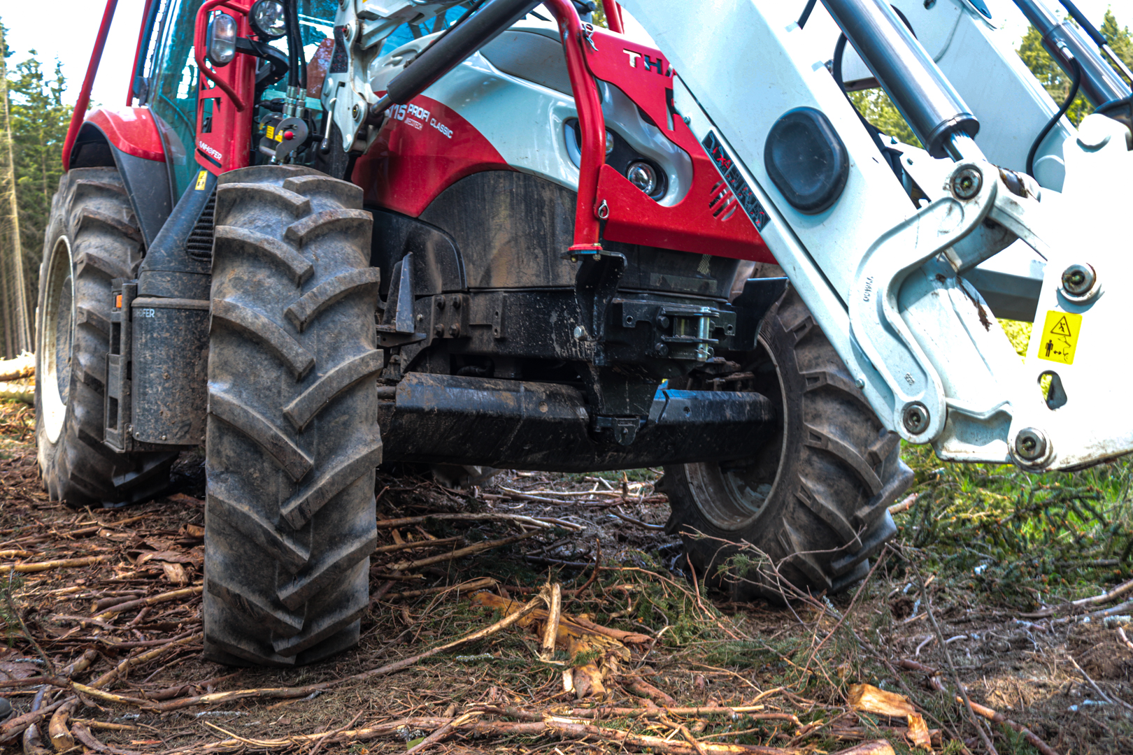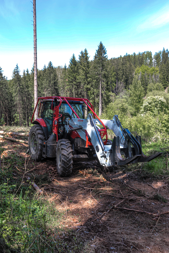 Traktor byl dodán včetně čelního nakladače, rampovače a navijáku, který je nejvíce vytížený. Do budoucna plánuje pan Hájek pořídit i vyvážečku, proto jedním z požadavků bylo otočné řízení přímo z výroby. „Otočné řízení ještě nevyužijeme, ale jednou se operátor potřeboval otočit v zimě, protože jsme se nemohli dostat do lesa kvůli zafoukaným loukám a závějím. Obsluha tedy řízení využila a jezdila pozadu, protože mezi mantinely nahrnutého sněhu se nedalo otočit. Zároveň se chystáme pořídit i lžíci do čelního nakladače a shrnovač na klest.“ Otočné pracoviště pro traktory STEYR Forst je speciálně upraveno pro pohodlné, ale především praktické ovládání. Sedadlo řidiče lze natočit o 180° a je upraven i celkový prostor pro nohy, všechny tři pedály nebo topení.