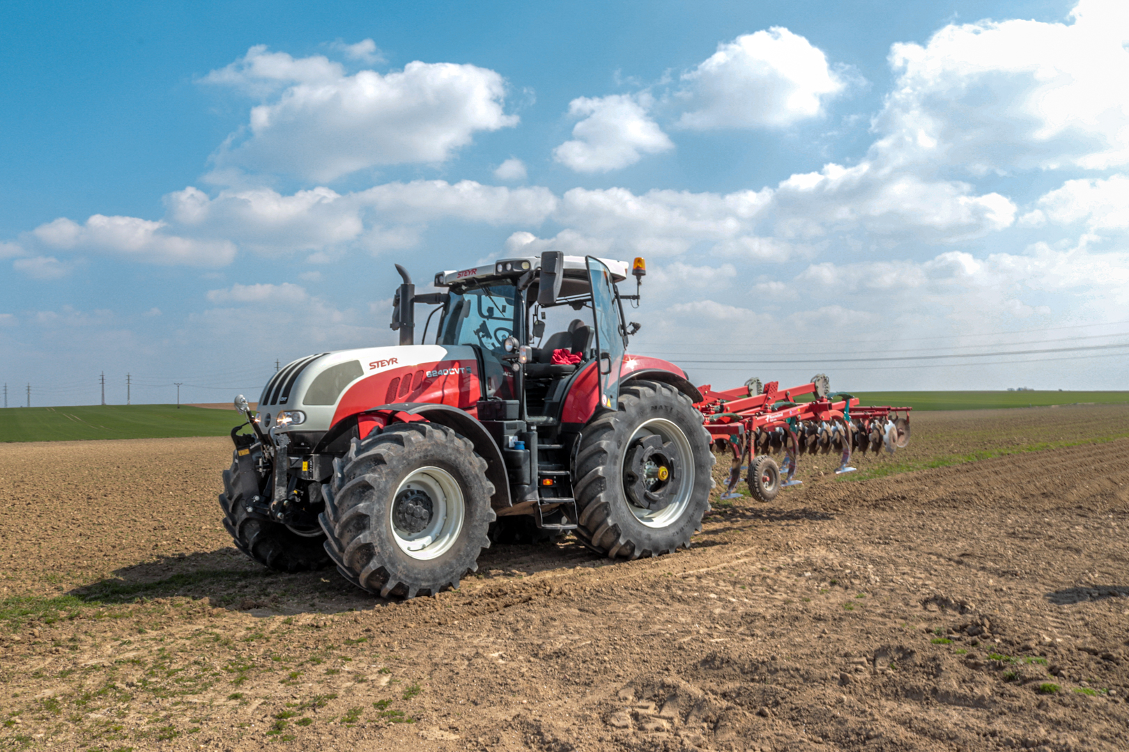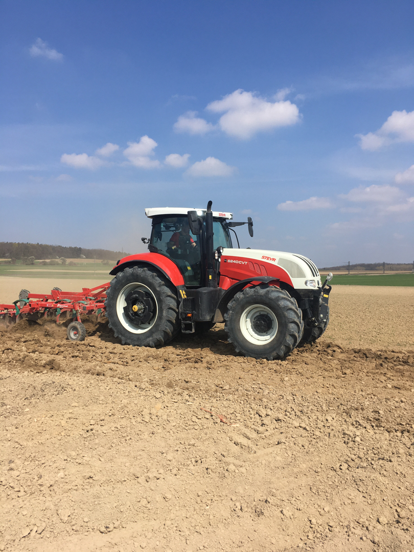 Na jaře roku 2020 si na farmu pořídili rakouského siláka STEYR 6240 CVT od našeho autorizovaného dealera AGRI SYSTEM. Traktor pohání 6válcový vznětový motor o objemu 6 700 cm3 a je vybaven elektronickým vstřikováním paliva Common Rail. Jedná se o nejsilnější traktor na farmě, díky svému maximálnímu výkonu 270 k zastává téměř většinu polních prací. Kromě plynulého převodového ústrojí je pro komfortní jízdu vybaven systémem řízení motoru a převodového ústrojí S-Tronic. Systém zaručuje optimální ovládání převodového poměru a otáček motoru přímo dle potřebné síly. Výhodou je automatické zajišťování minimální spotřeby paliva. Tomuto silákovi nechabí ani výkonný hydraulický systém s axiálním pístovým hydrogenerátorem o průtoku 170 l/min a 4 elektrické zadní vnější okruhy pro těžké polní práce.