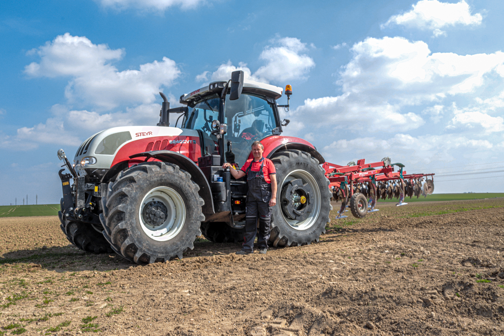 „Vždycky se mi STEYR líbil svým designem. Dokonce kolega je Slávista, takže nám to rovnou ladí. S traktorem jsem moc spokojený. To top je určitě výbava a komfort. Celkové vnitřní pohodlí, komfortní sedačka, kožený volant, který má silnější madla a padne přímo do ruky. A co jsem ještě u žádného traktoru předtím neměl, tak je otáčecí loketní opěrka s Multicontrollerem. Člověk díky tomu vidí krásně při zapřahování. Určitě bych vyzdvihl i klimatizaci, ta funguje perfektně. Potěšily mě hodně detaily jako třeba kobereček na podlaze a elektricky ovládaná zrcátka. Ještě jsem na žádným traktoru třeba neměl LED osvětlení. Tak tohle je při práci za tmy prostě nádhera. Když potom jezdíme v létě po ránu za tmy vybírat brambory, tak i na kombajn je krásně vidět. Dá se přepínat tak, aby svítil jen spodek, nebo jen boky, světlomety se dají krásně měnit. Traktor je opravdu pohodlný a má drobnosti, které člověku udělají radost.“