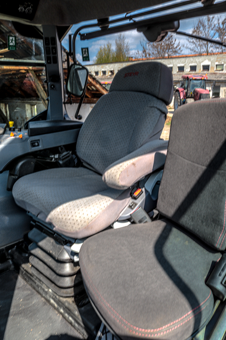 Kromě zmíněné výbavy je kabina traktoru vybavena odpružením s možností nastavení tvrdosti až v 5 stupních v závislosti na aktuální pracovní operaci. Přední a zadní sluneční clona v kombinaci se zadním tónovaným oknem přijde vhod předně během letní sezóny. Kromě vzduchem odpruženého nízkofrekvenčního sedadla Dual-Motion náročnou práci zpříjemní i poslech hudby prostřednictvím STEYR SOUND SYSTEMU, který zahrnuje rádio, subwoofer a 4 výkonné reproduktory. Traktor byl dodán i včetně dotykového monitoru S-Tech 700 a ISOBUS II s přípravou pro navigační systém výrobce S-Guide včetně adaptivního systému řízení.