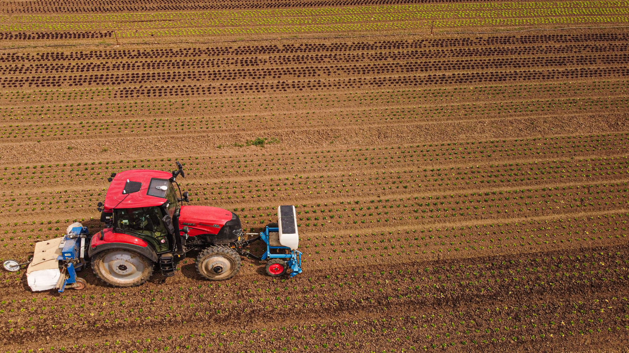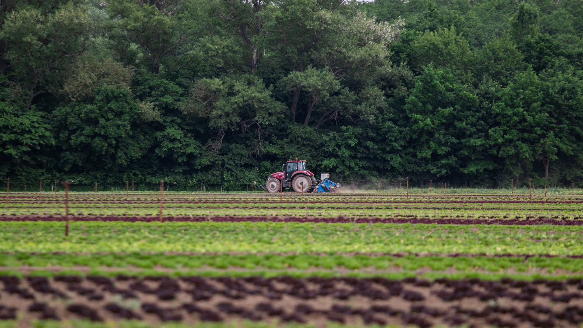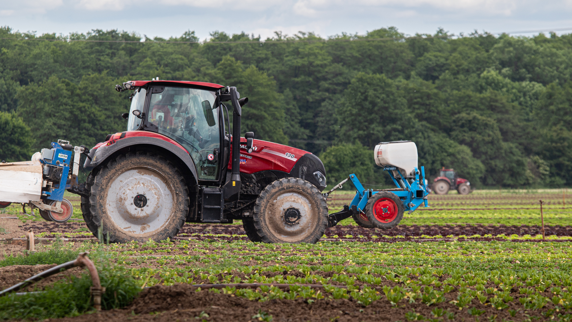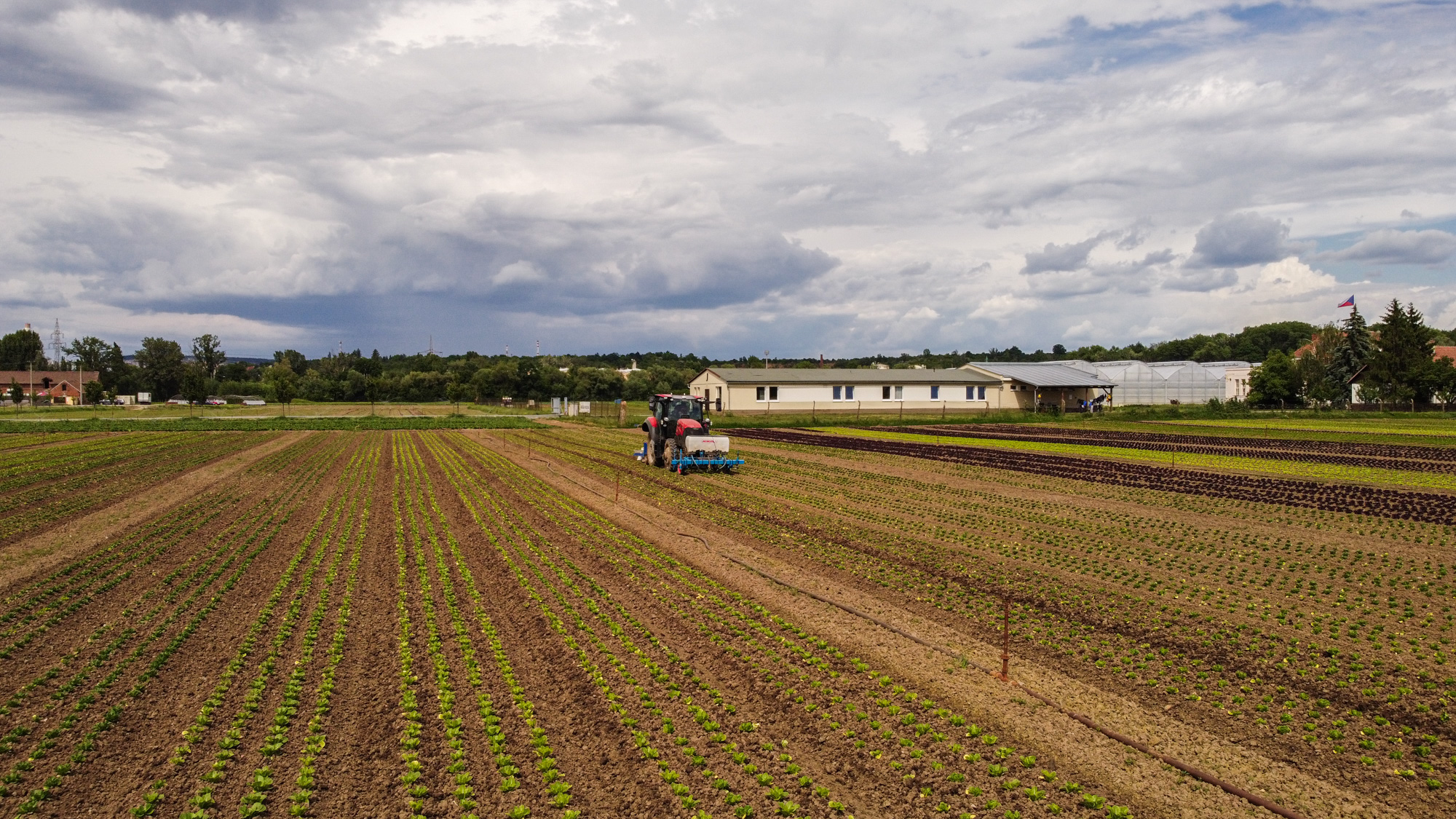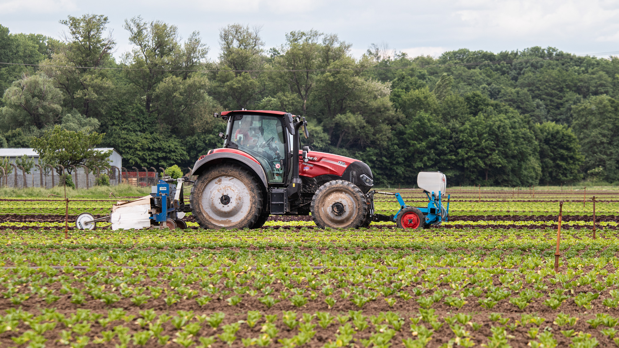 Farmall je na sázení salátů už moc rychlý, nejnižší rychlost má 3,5 km v hodině. Proto Farmall nejčastěji záhonuje. A Vestrum sází a plečkuje: ”Někdy plečkujeme i 20 hodin denně. Střídají se dva traktoristi a řídí autopilot s gps na 2 cm. Traktor má spoustu výkonných světel, takže se s tím dá jezdit i potmě.”