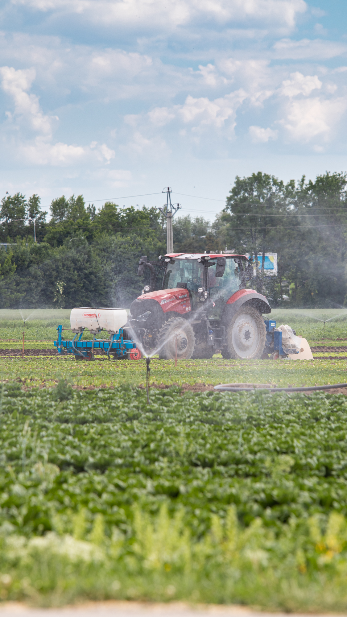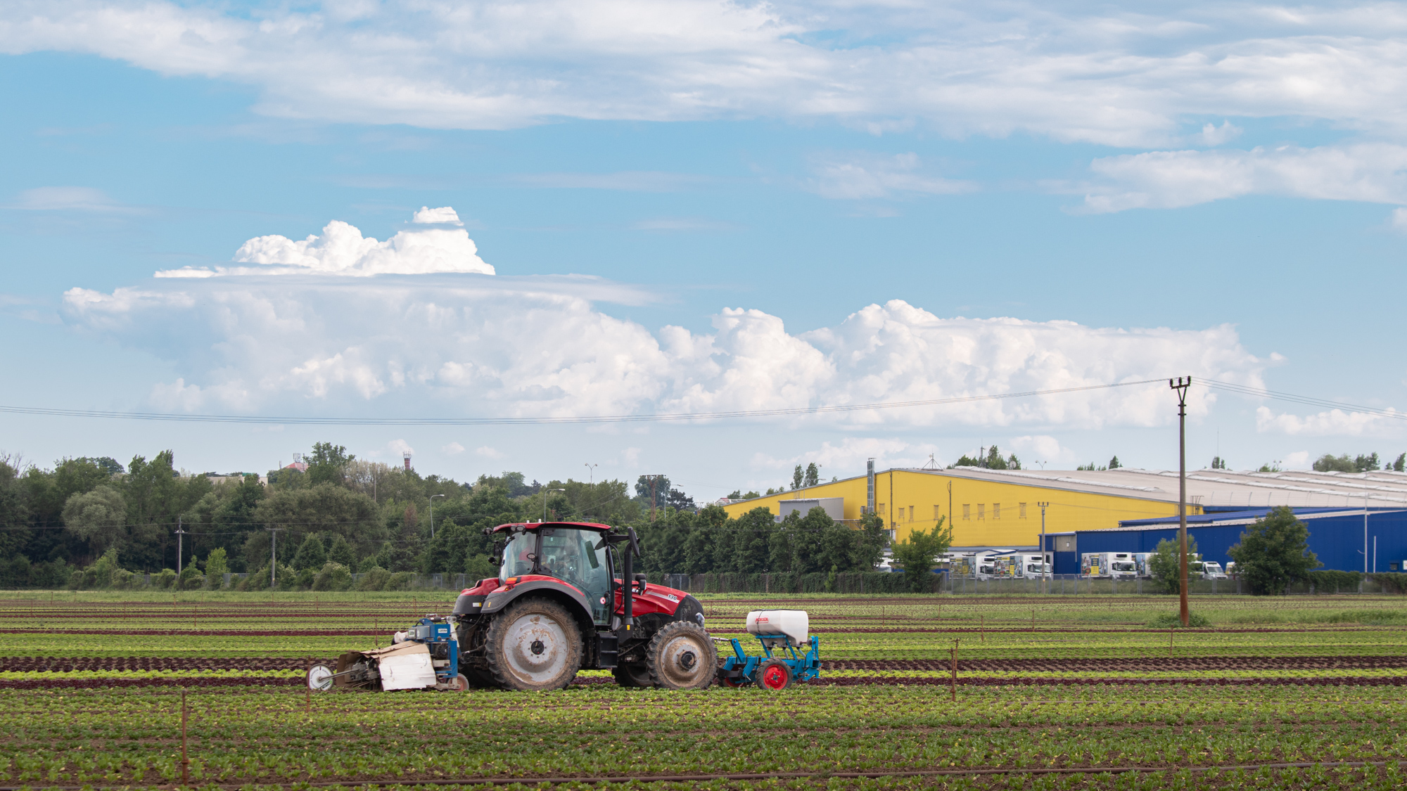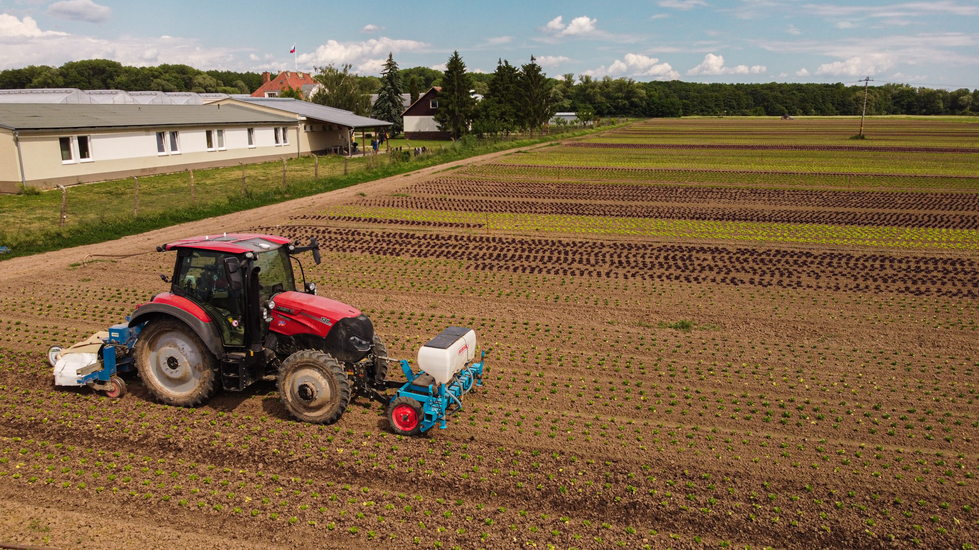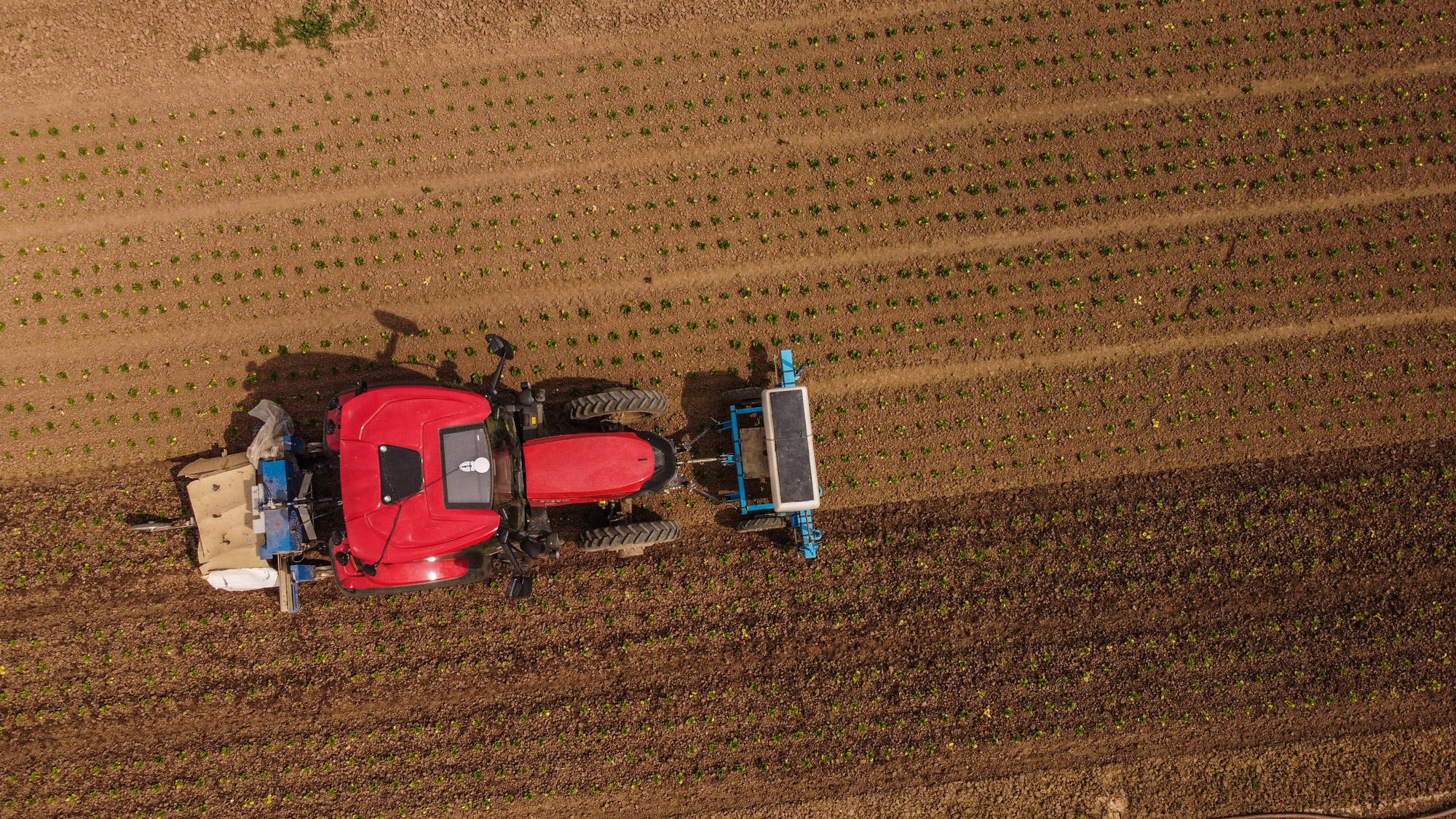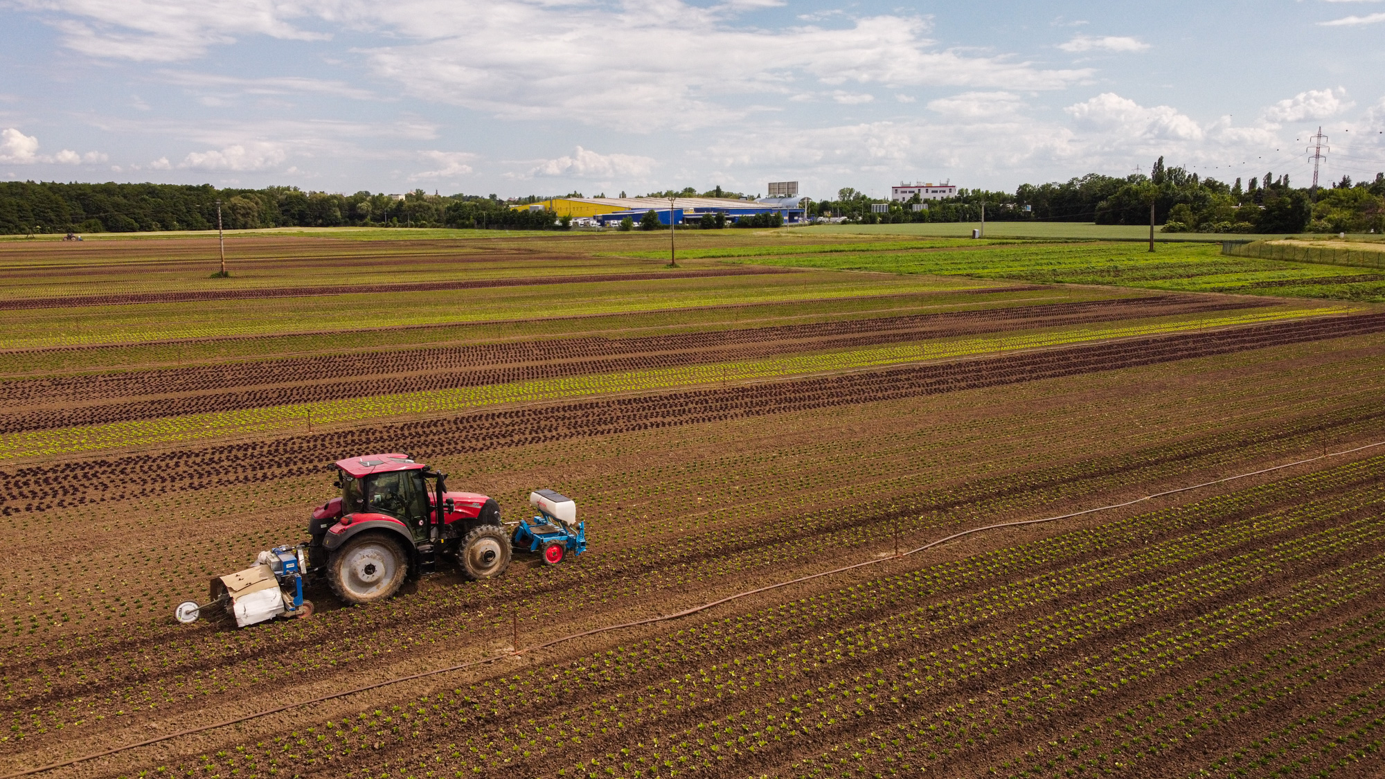 Farmall je na sázení salátů už moc rychlý, nejnižší rychlost má 3,5 km v hodině. Proto Farmall nejčastěji záhonuje. A Vestrum sází a plečkuje: ”Někdy plečkujeme i 20 hodin denně. Střídají se dva traktoristi a řídí autopilot s gps na 2 cm. Traktor má spoustu výkonných světel, takže se s tím dá jezdit i potmě.”