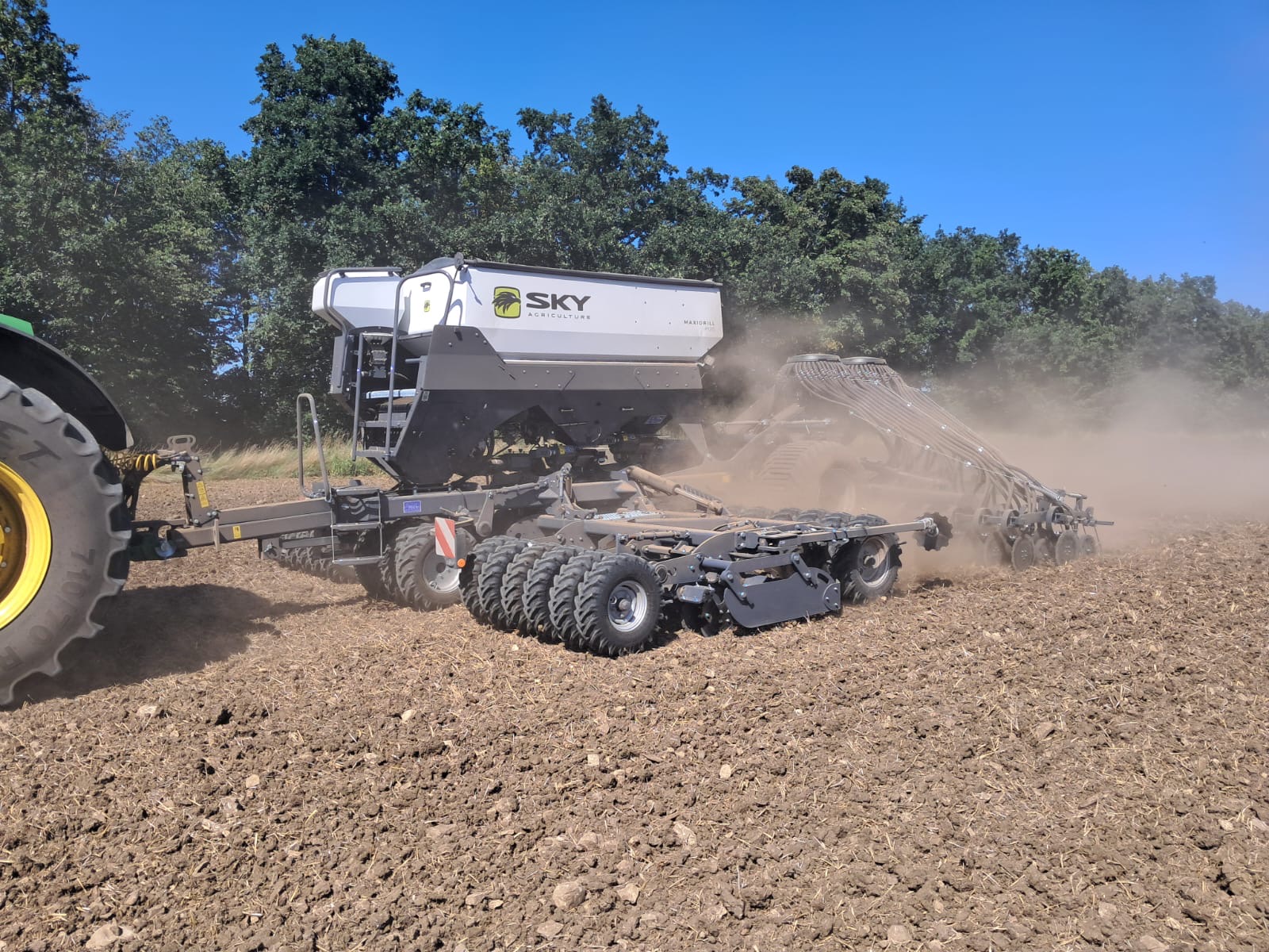 VÍNO BLATEL má se secími stroji SKY Maxidrill dlouhodobé zkušenosti. První model pořídili v roce 2016, kdy nahradil dříve používaný bezorebný secí stroj. Podle agronoma se bezorebný secí stroj neosvědčoval, zejména kvůli problémům při setí za vlhčích podmínek. Jak uvedl, se strojem se prakticky nedalo pracovat, pokud bylo na poli trochu vlhko, a právě to byl hlavní důvod, proč došlo k jeho výměně za SKY Maxidrill. Od té doby je s tímto strojem velmi spokojený – oceňuje jeho spolehlivost, snadnou průchodnost a schopnost pracovat i ve zhoršených podmínkách. Druhý secí stroj SKY Maxidrill byl pořízen letos v září.