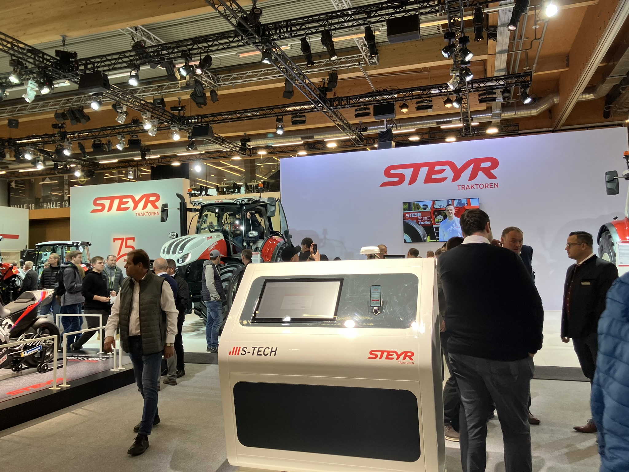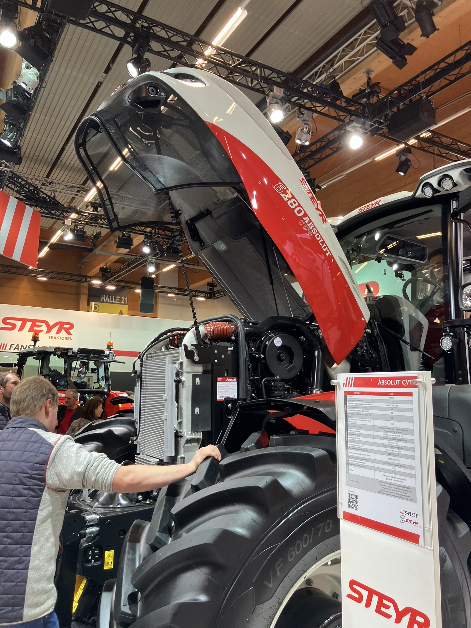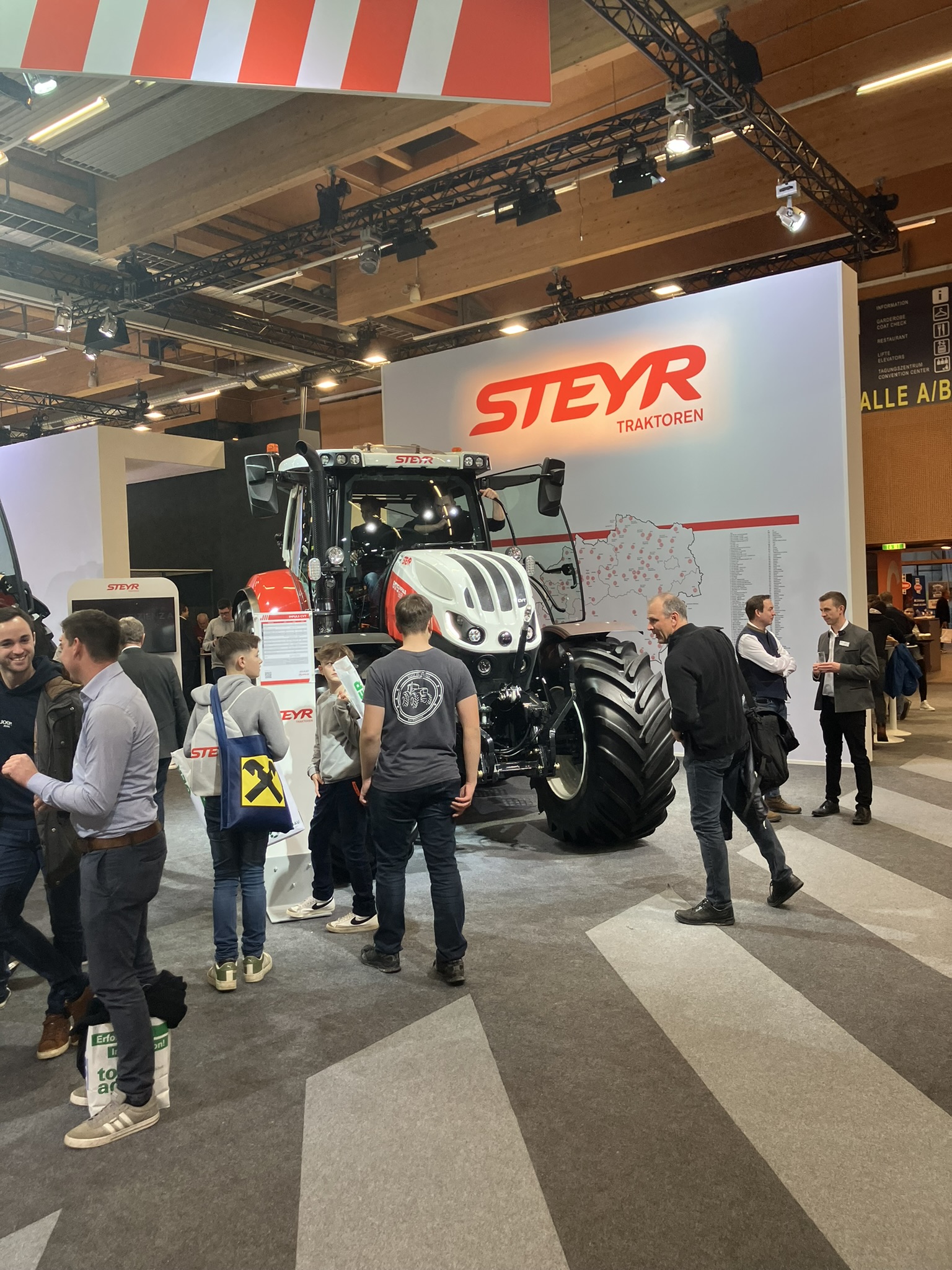 Produkt manažer značky STEYR pro Českou republiku a Slovensko postupně představil zákazníkům jednotlivé modelové řady. Veletrh AGRARIA byl pro zákazníky jedinečnou příležitostí, protože mohli na jednom místě vidět všechny nabízené modely od Kompakt S, přes Expert CVT, až po Terrus CVT, včetně lesnické a komunální nástavby nebo navigačních systémů. Stánek STEYR byl laděn do