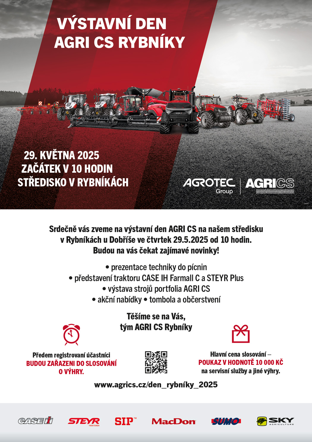 Srdečně vás zveme na výstavní den AGRI CS na našem středisku v Rybníkách u Dobříše ve čtvrtek 29.5.2025 od 10 hodin.