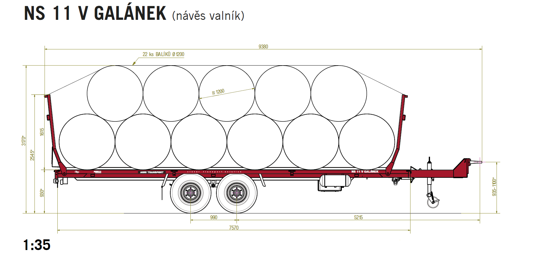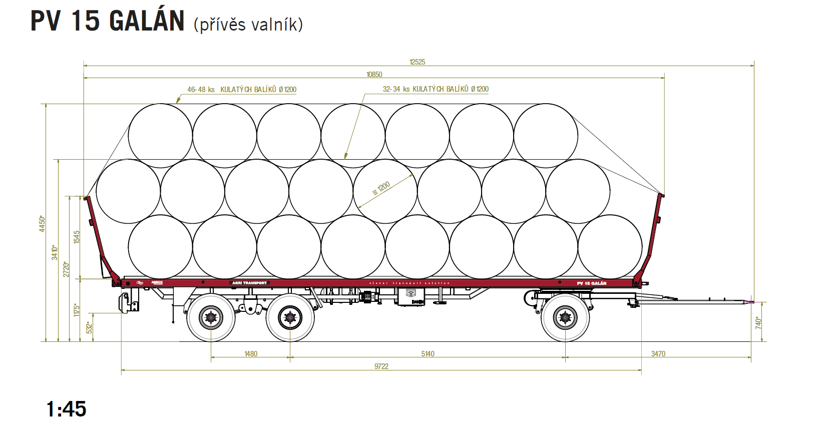 Jsou vhodné pro transport až 48 kusů kulatých nebo hranatých balíků o maximální nosnosti 13 tun. Balíky jsou zajištěny zinkovanými zábranami, vázacími kurtami a valníky prostřednictvím zakládacích klínů. Navíc lze přepravníky vybavit bočnicemi, rezervou, skříňkou na nářadí nebo blatníky. Přívěsy PBS disponují automatickým zátěžovým regulátorem upravujícím regulační poměr v závislosti na aktuálním zatížení vozidla a ojí typu Y pro lepší manévrovatelnost.