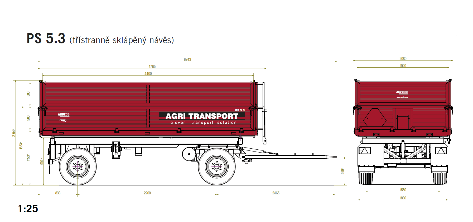 Koncepce dvounápravového točnicového přívěsu s vysokou nosností 5 nebo 11 tun. Přívěsy PS jsou vhodné pro přepravu hnoje, zrna, krmiv a ostatních zemědělských komodit.