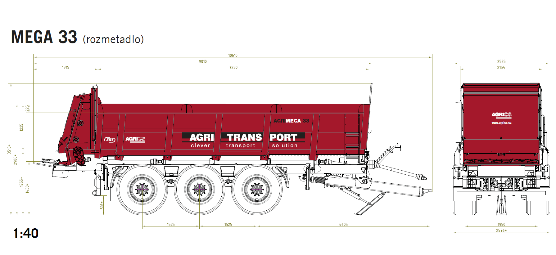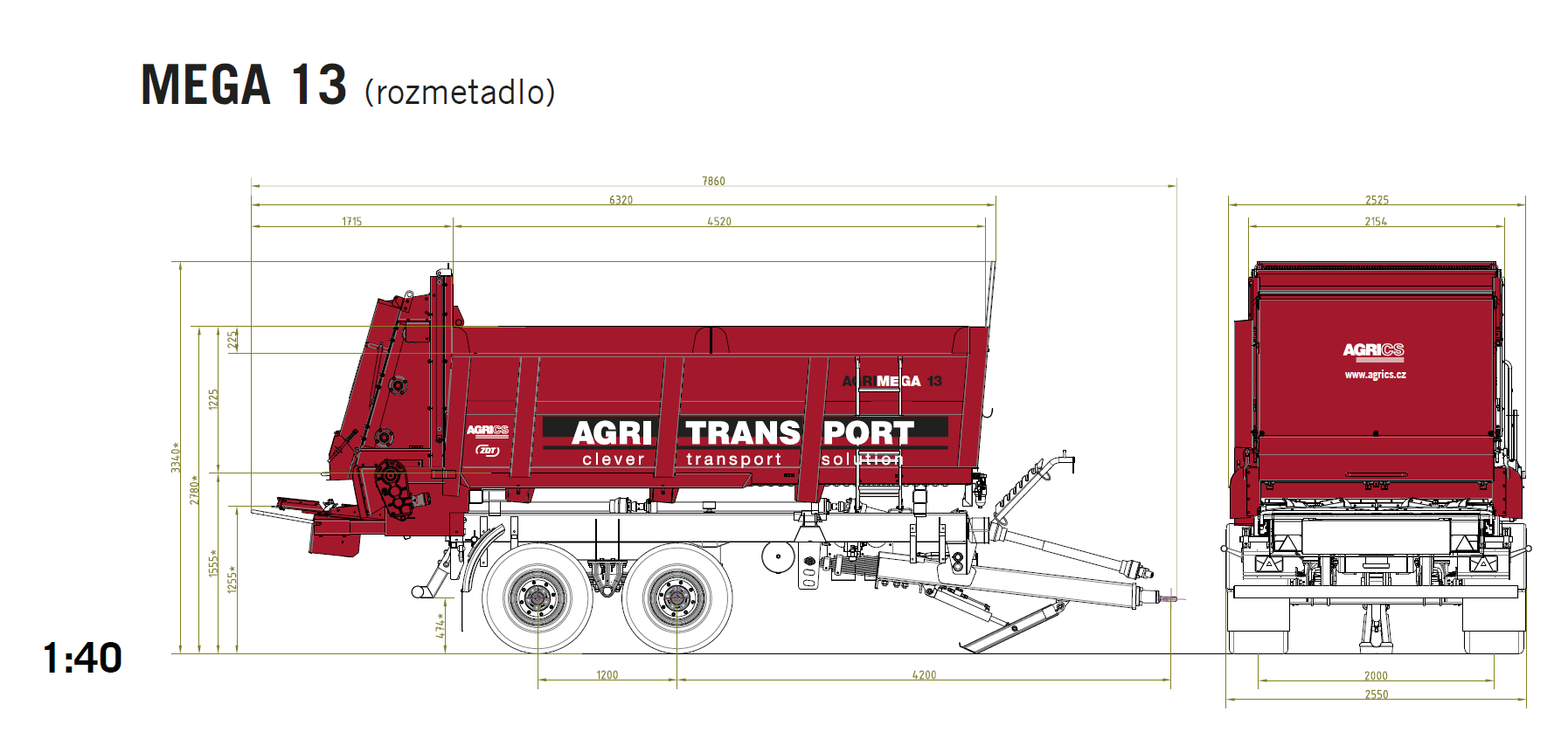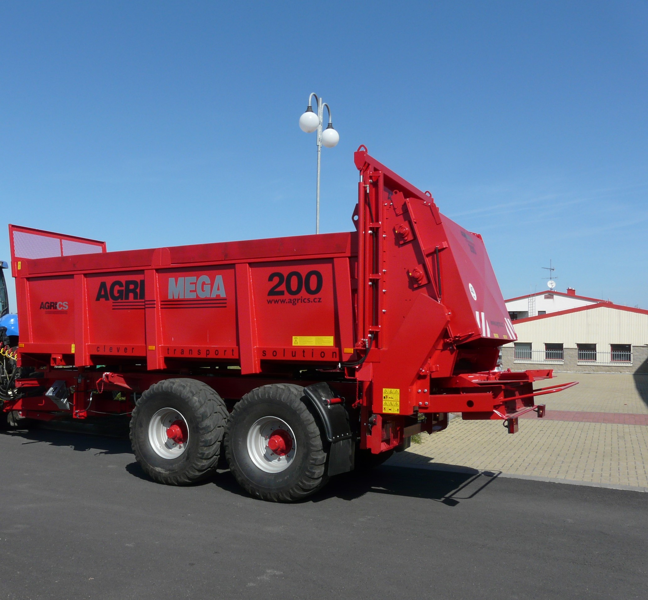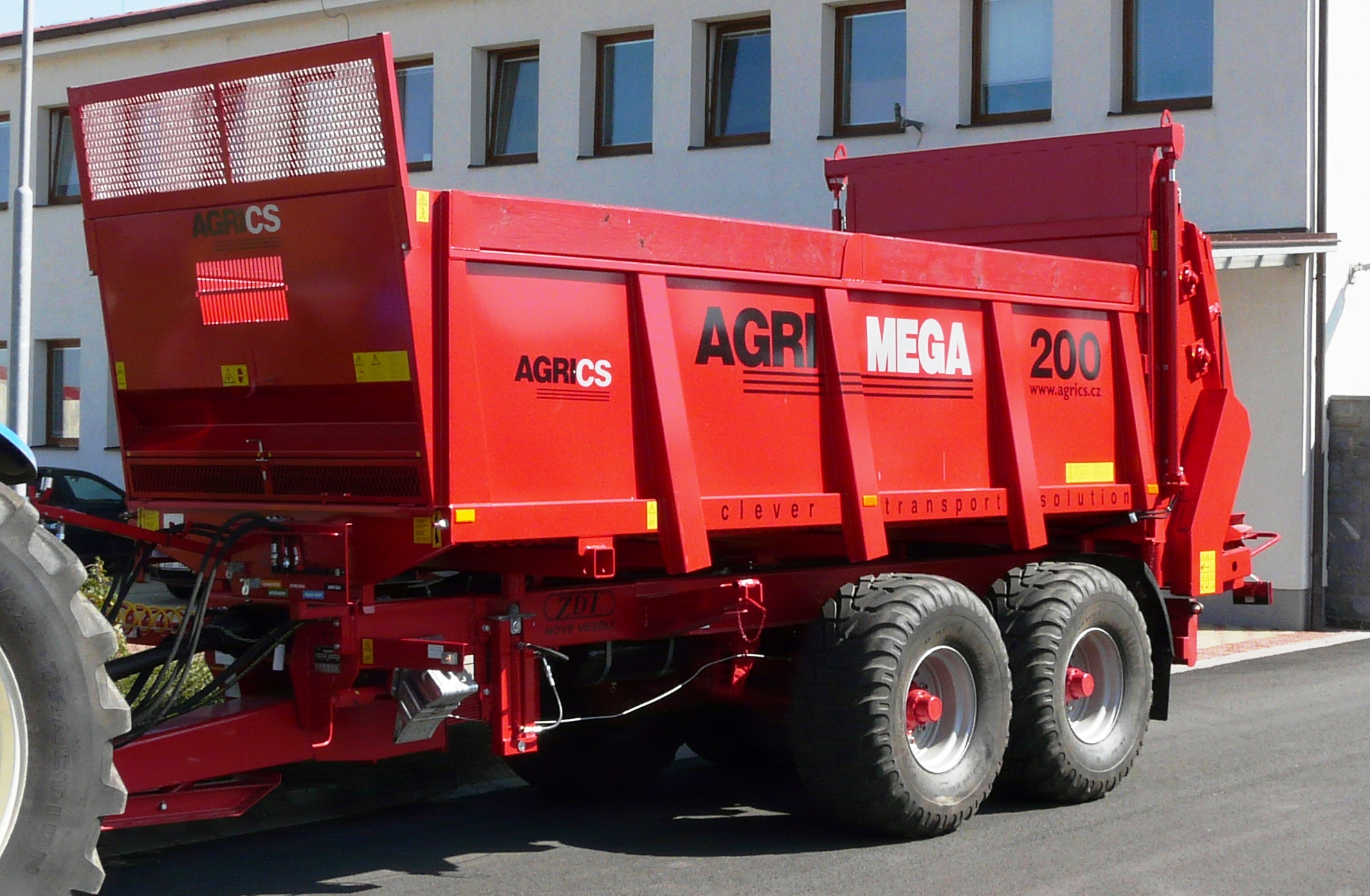 Podvozky AGRIMEGA a GRAND SUPER fungují na principu rychlé výměny koreb, cisterny nebo rozmetadla chlévské mrvy. Pohon rozmetacího ústrojí je zajištěn vývodovým hřídelem traktoru. Střižné šrouby a elektronický snímač otáček jistí mechanismus stroje proti přetížení a poškození. Rozmetadlo lze vybavit i světlometem na předním štítu.
