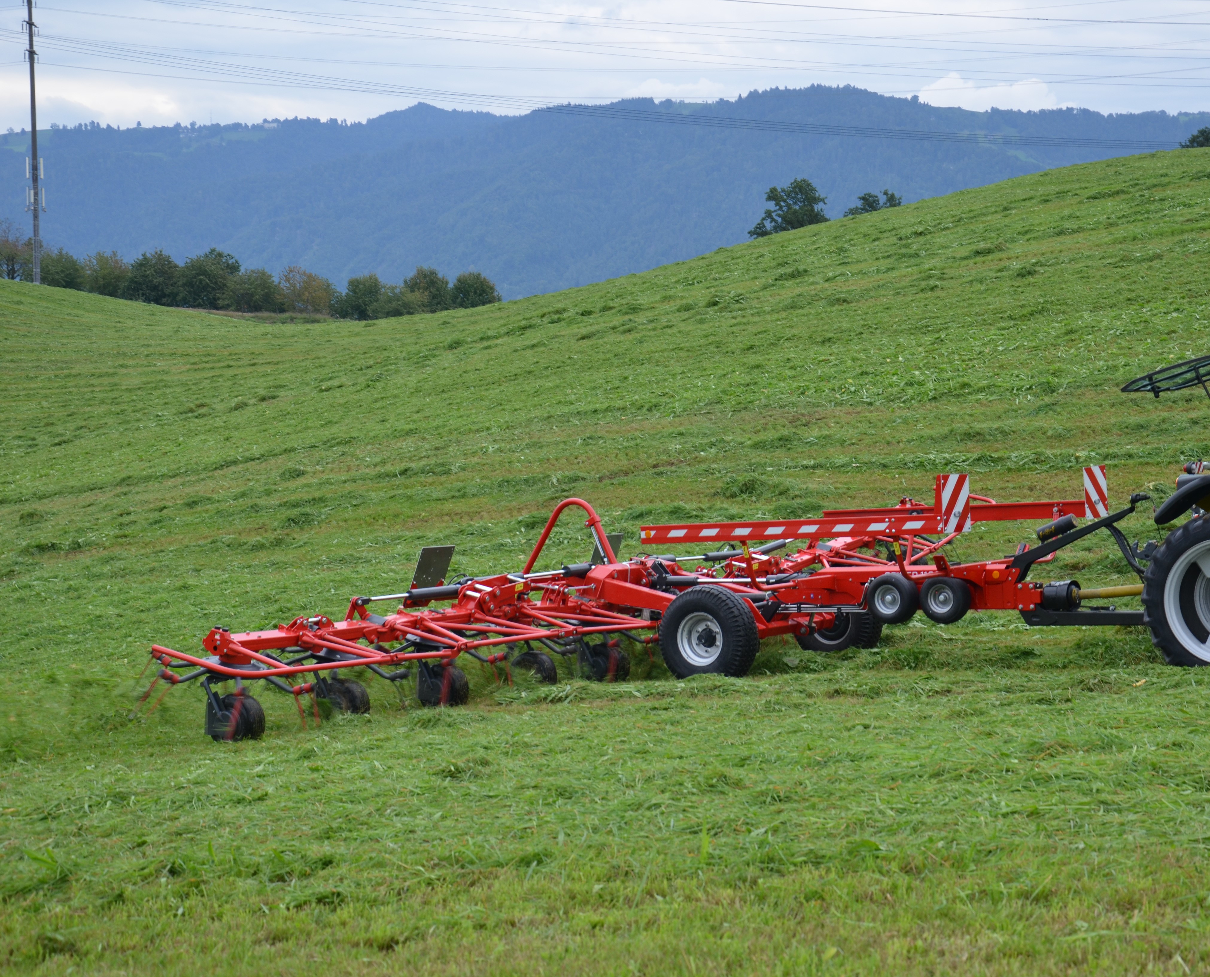 Inovativní geometrie rotorů o malém průměru s masivními trubkami o kruhovém průřezu a rameny, které disponují pružinovými prsty, představuje velké vylepšení pro rovnoměrný a optimální rozhoz. Díky tomu je lepší jak pracovní výkon, tak i celkový rozhoz, a píce může mnohem rychleji prosychat.