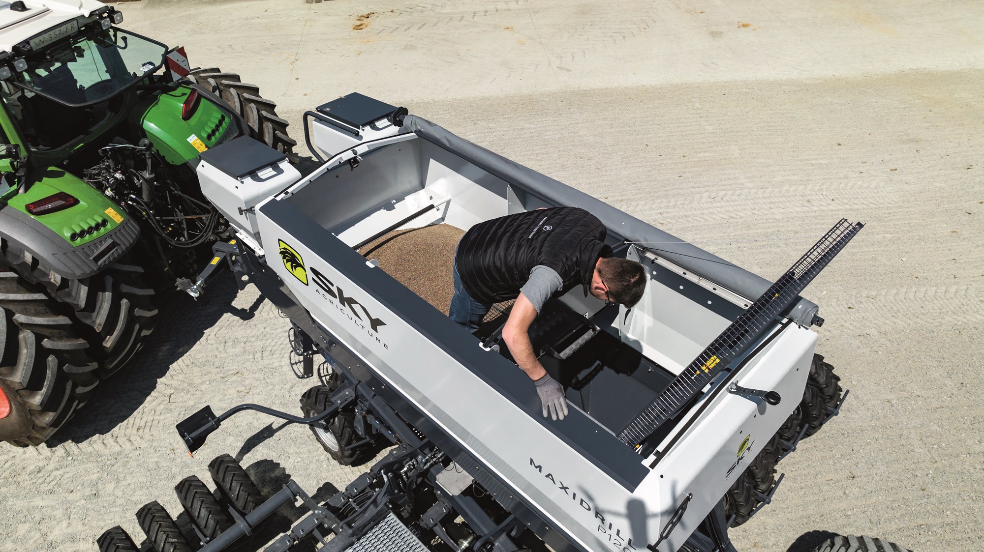 Univerzální secí stroj Maxidrill s diskovou přípravou disponuje 4 zásobníky, které lze využít k výsevu vícekomponentních směsek nebo k setí hlavní plodiny s pomocnou plodinou se současným hnojením.
