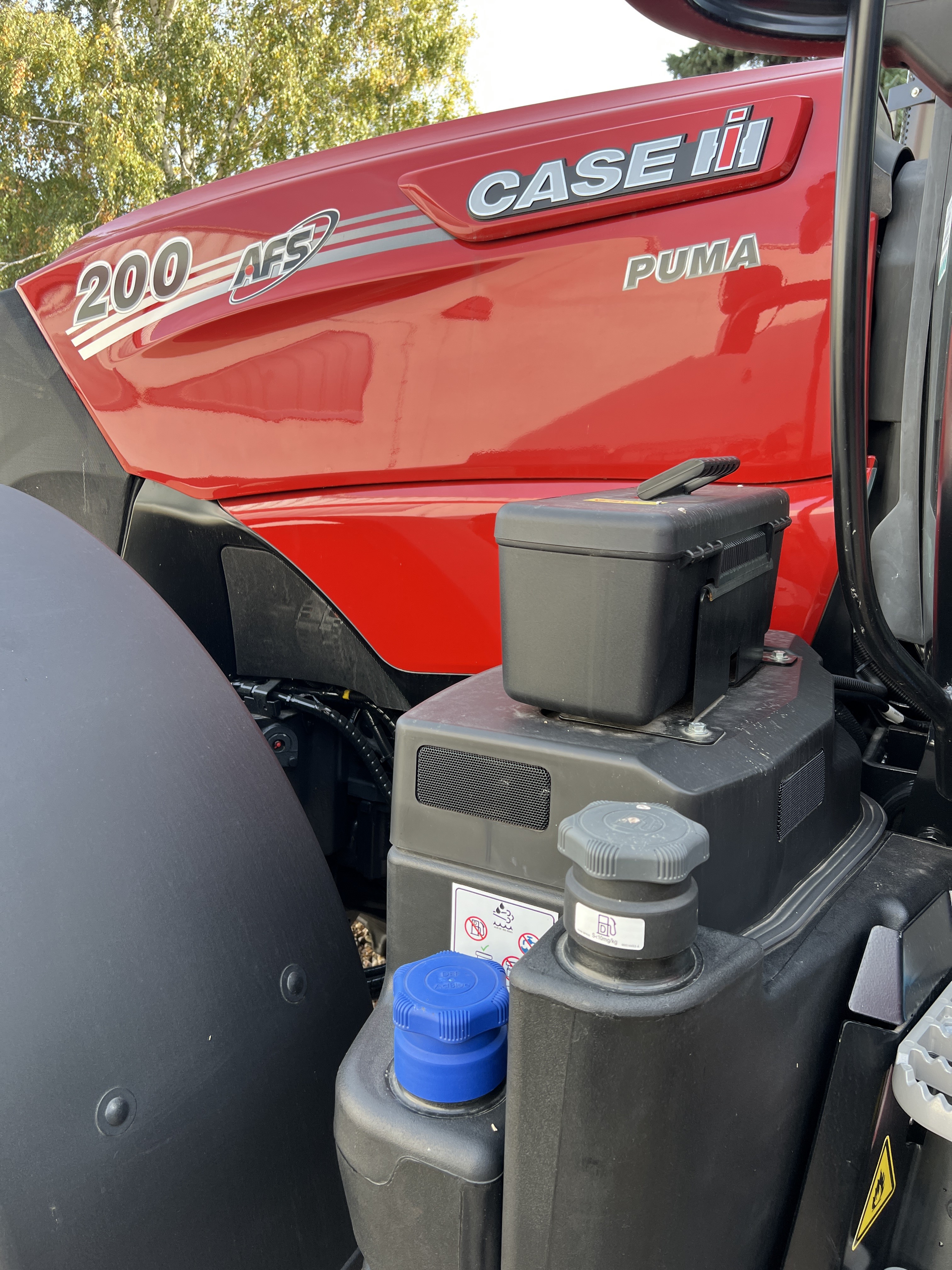 CASE IH - FPT, 6-ti válcový přeplňovaný motor NEF 67 s mezichladičem stlačeného vzduchu, objem 6728 cm3 l, křížová hlava válců, 4 ventily na válec – 24V, vysokotlaké elektronické vstřikování paliva systémem Common-Rail, turbodmychadlo s WasteGate, elektronicky řízená viskosní spojka ventilátoru, předčistič vzduchového filtru s odsáváním nečistot, předehřev nasávaného vzduchu, elektronické konstantní otáčky Cruise Control, Idle Speed management – snížení volnoběžných otáček z 850 na 650 ot.min, plní Stage 5, technologie úpravy spalin Hi-eSCR2 (DOC a SCRoF katalyzátor, klapka ve výfuku), bez recirkulace spalin, alternátor 210 A, akumulátor 1 300 CCA / 176 Ah, el. odpojovač akumulátoru, palivová nádrž 601 + 96 l AdBlue (465 l + 54 AdBlue se schránkou na nářadí), servisní interval motoru 750 hodin, olejová náplň 19 l