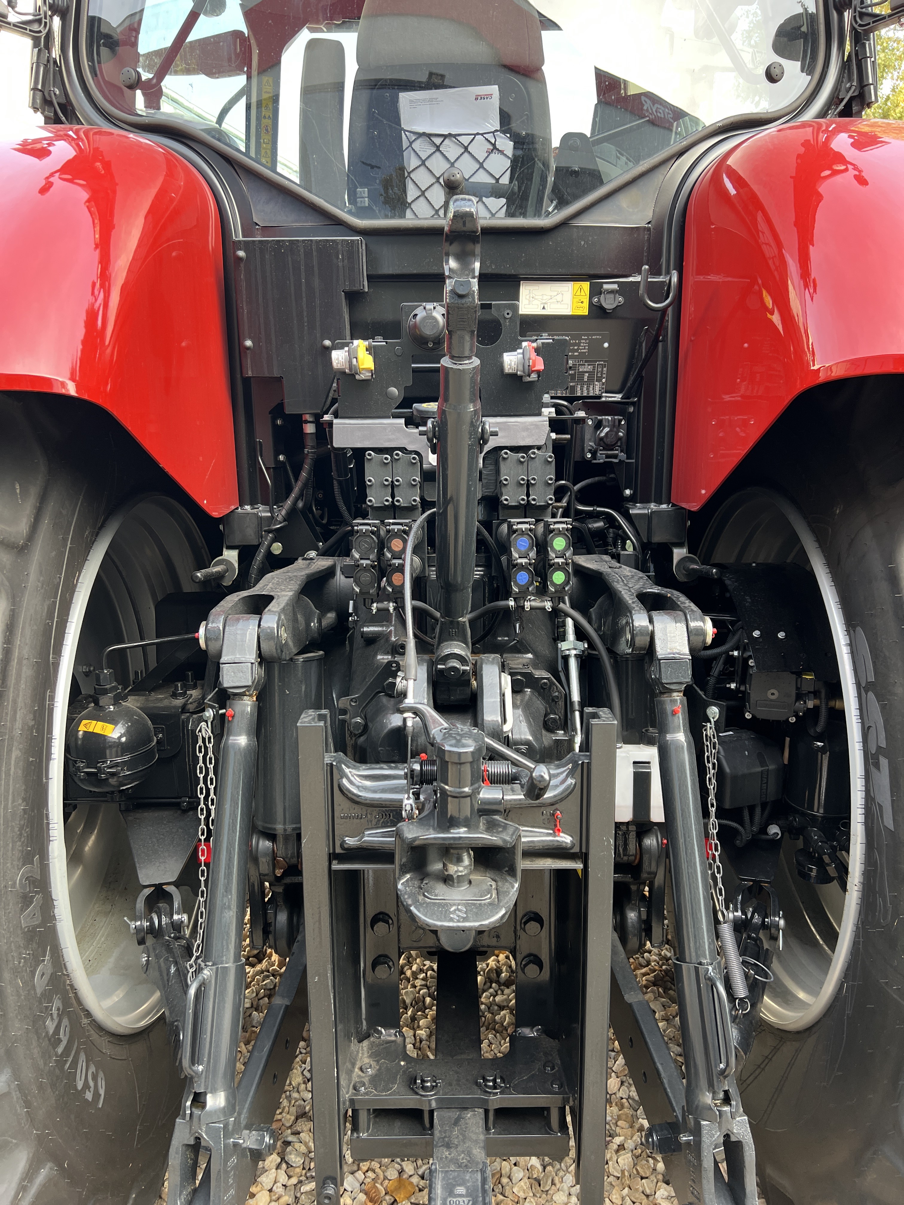 Elektronická regulace tříbodové závěsu (EDC) včetně regulace prokluzu kol (radar), max. zvedací kapacita závěsu 10460 kg – zvedací písty o průměru 110mm, tříbodový rychlozávěs Kat.II/III, auto stabilizátory závěsu,  axiální Load Sensing čerpadlo s výkonem 170 l/min, max. tlak 215 bar, 4 elektronicky ovládané okruhy hydrauliky prostřednictvím loketní opěrky Multicontroller a joysticku, nastavení průtoku a časování hydraulických okruhů (max. průtok okruhů 140 l/min), možnost odebrat až 51 l oleje, ovládání zadního TBZ a jednoho okruhu na zadních blatníkách