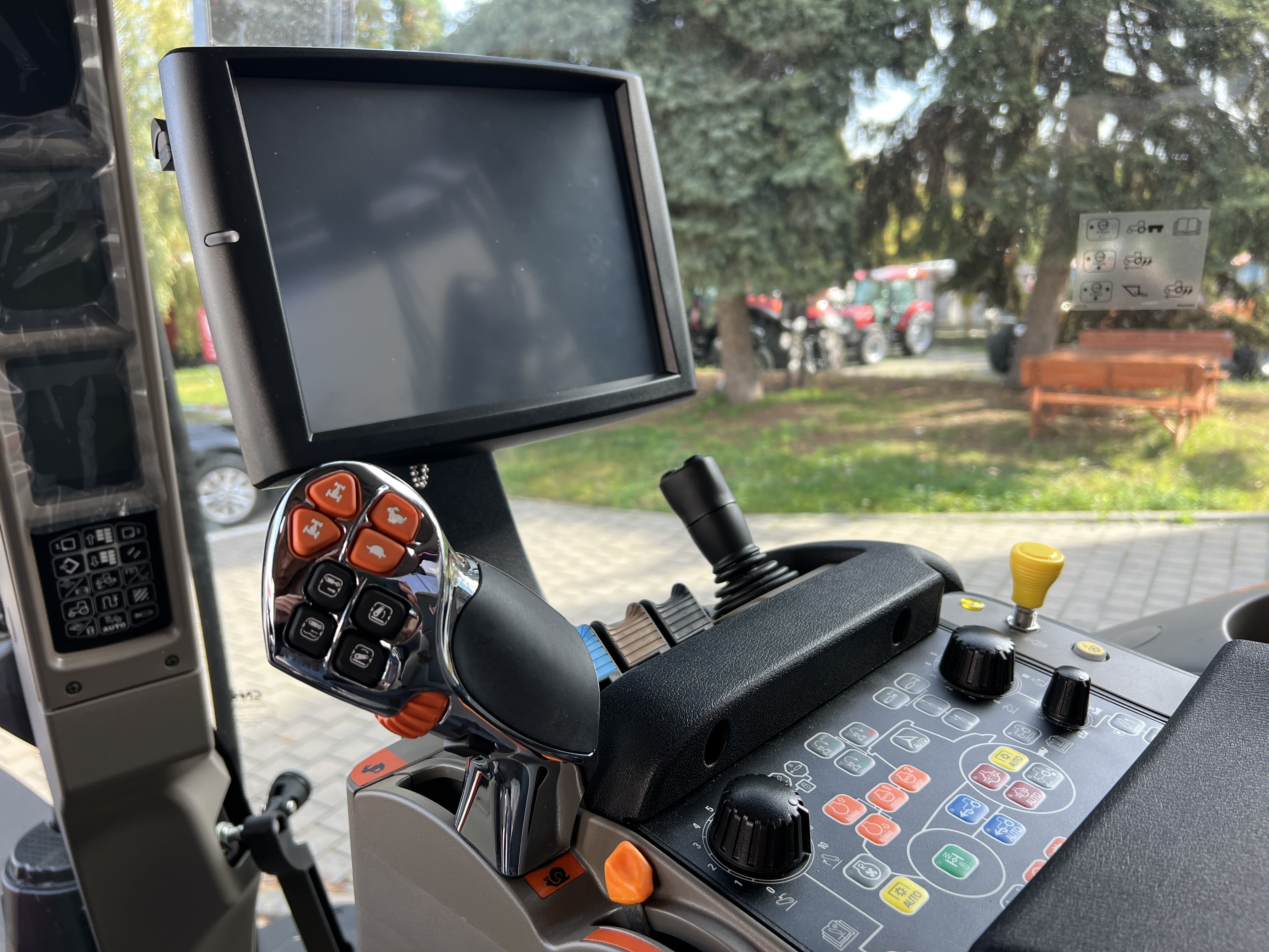 DELUXE KOMFORT PAKET: Automatická klimatizace, sedadlo Dual Motion Air s odkláněním hlavové opěrky, nízkofrekvenčním a dynamickým pružením DDS, natáčením do stran, pasivní ventilací, nové čalounění sedadla spolujezdce, kůží potažený volat, koberec na podlaze, elektrické ovládání loketní opěrky Multicontroller, dotykový monitor AFS 700 Pro na loketní opěrce, ovládací panel funkcí ICP, 4 halogenová pracovní světla v masce, 8 LED pracovních světlometů (4 v přední části střechy, 4 v zadní části střechy, každé 1000 lm), držák na pracovní monitory a mobil s USB zásuvkou, LED maják na levé straně