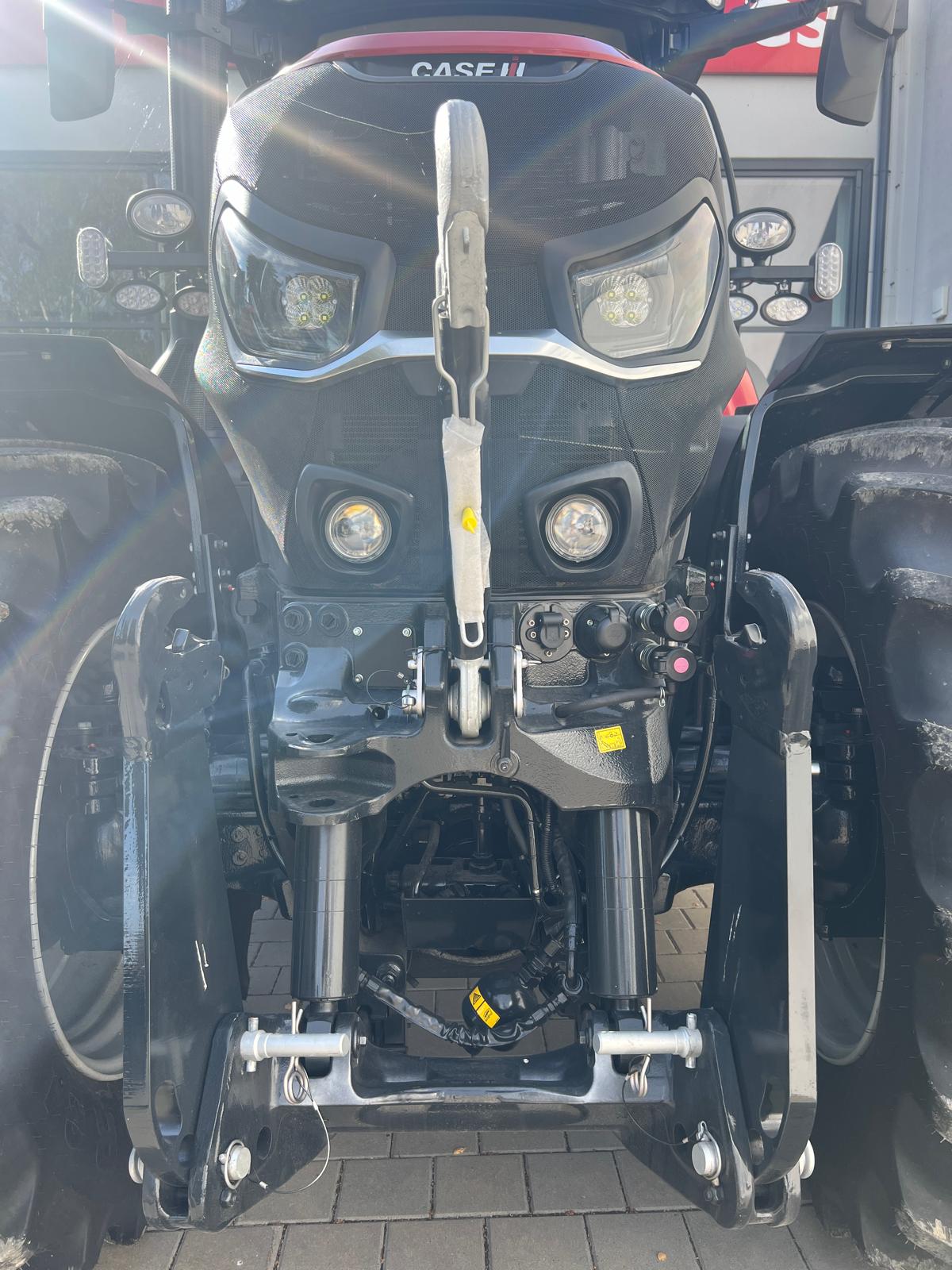 Odpružená, robustní přední náprava kat. 5 Heavy Duty, se zlepšenými tahovými vlastnostmi – tahový bod uprostřed traktoru, nastavení tuhosti odpružení ve 3 stupních, reaktivní řízení, adaptivní řízení s možností nastavení počtu otáček volantu, natáčecí přední blatníky.