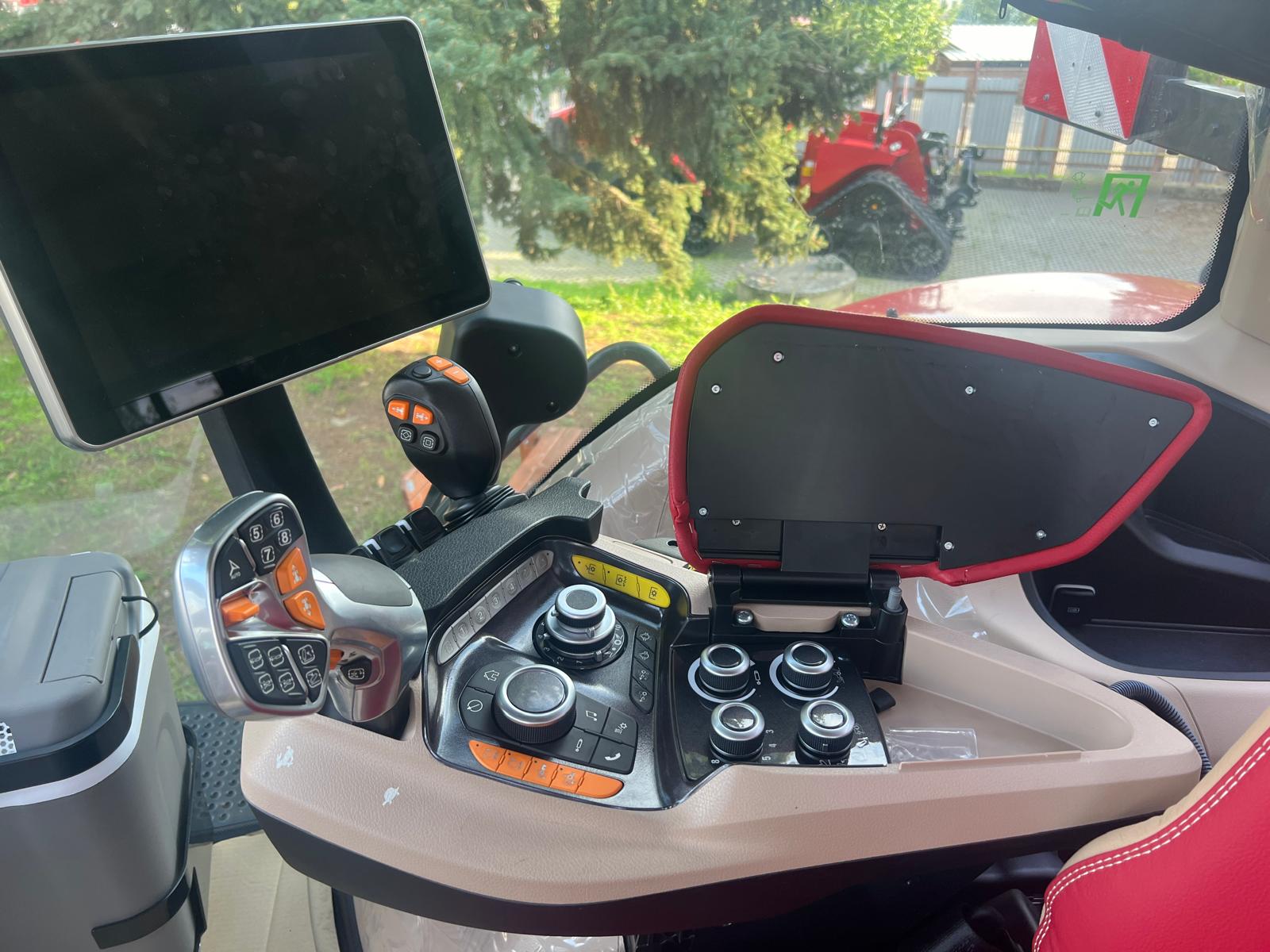 Nová ovládací loketní opěrka Multicontroller s multifukční pákou, sdružený ovladač Encoder s rychlým menu, barevný dotykový monitor AFS 1200 PRO, operační systém Vision pro nastavení všech funkcí traktoru, barevný provozní monitor na A sloupku, konfigurovatelná ISO tlačítka. |