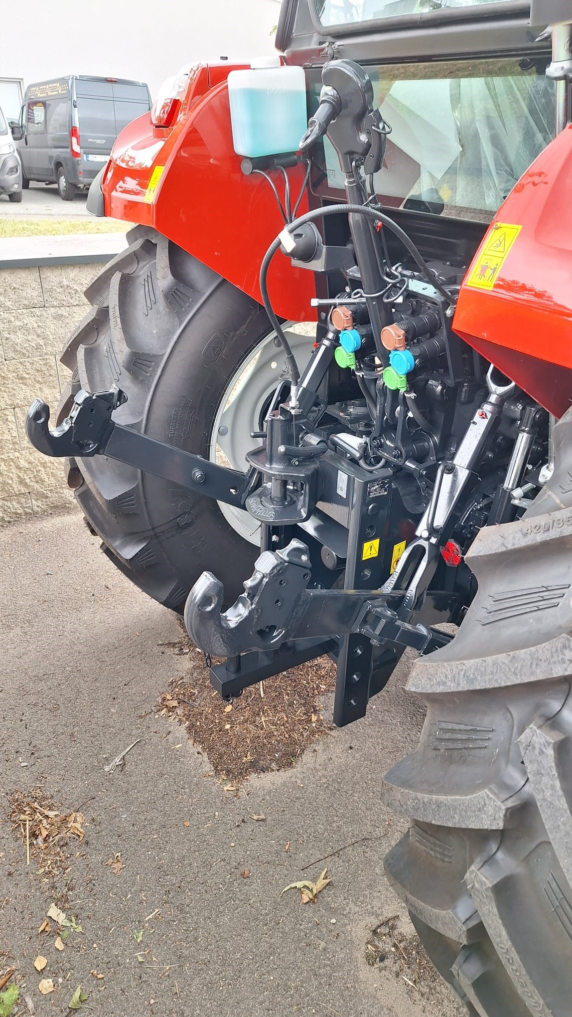 Vpředu pouze tažné oko, schránka nářadí, zadní tříbodový závěs s rychloupínáky. |
