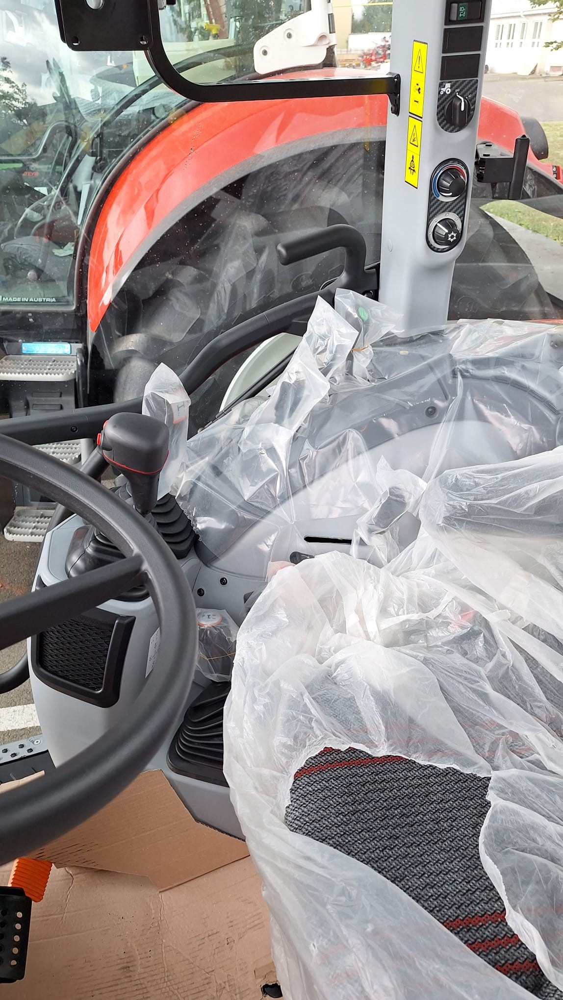 Komfortní kabina s klimatizací, topením a filtrací nasávaného vzduchu, velké přední střešní okno pro čelní nakladač, vzduchem odpružené sedadlo řidiče v provedení „Deluxe“ (bezpečnostní pás, loketní opěrka, s možnosti otočení o 15°), sedačka spolujezdce s pásem, sklopně nastavitelný sloupek řízení s digitální přístrojovou deskou, rádio s reproduktory, 2 teleskopická vnější zpětná zrcátka, 4 přední (kapota + kabina) + 4 zadní pracovní světla ve střeše kabiny + alternativní potkávací světlomety, přední a zadní stěrač s ostřikovačem, schránka na nářadí.