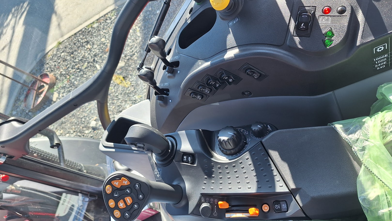 Odpružená komfortní kabina s klimatizací, topením a filtrací nasávaného vzduchu, velké otevíratelné střešní okno pro čelní nakladač, nízkofrekvenční vzduchem odpružené sedadlo řidiče v provedení „Premium“ s vyhříváním a hlavovou opěrkou s logem STEYR, pohodlná sedačka spolujezdce s bezpečnostním pásem, nastavitelný sloupek řízení ve dvou směrech s digitální přístrojovou deskou (analogové/digitální ukazatele), kožený volant se tkaným kobercem STEYR, multifunkční loketní opěrka s Multicontrollerem (ovládání spojky, násobiče, reverzace a zvedání ramen), 2 zásuvky na 12 V, 8 A, 25 A a 40 A, rádio s Bluetooth s reproduktory, 2 teleskopická vnější zpětná zrcátka a jednou vnitřní zrcátko, 4 LED přední + 4 LED zadní pracovní světla ve střeše kabiny a 2 přední pracovní světla v masce traktoru + alternativní potkávací světlomety, přední a zadní stěrač s ostřikovačem, sluneční clona na střešní a čelní sklo, otevíratelná boční a zadní okna, držák mobilního telefonu RAM, držák registrační značky ve střeše, elektronický odpojovač akumulátoru, LED maják na levé straně, schránka na nářadí. |