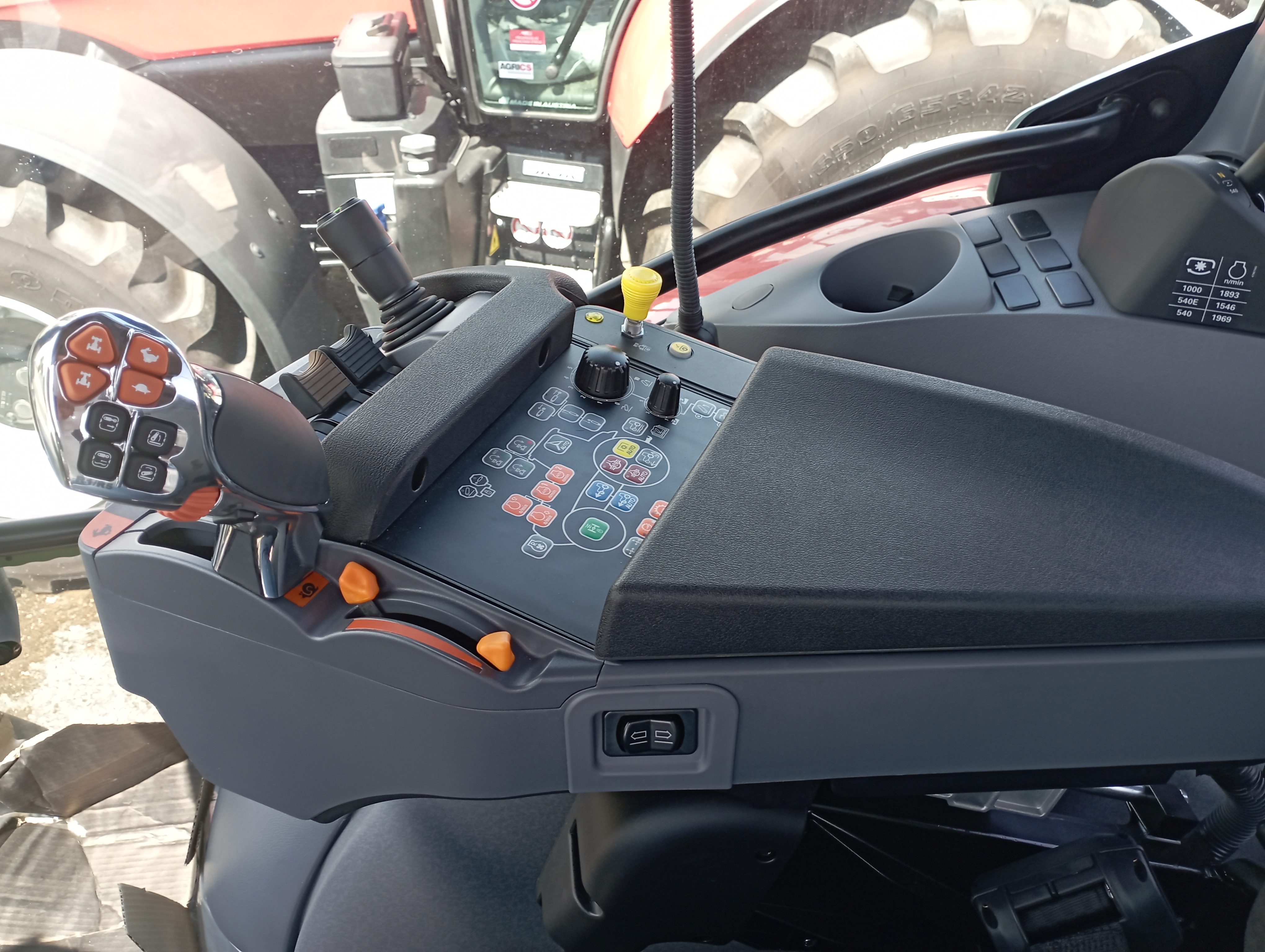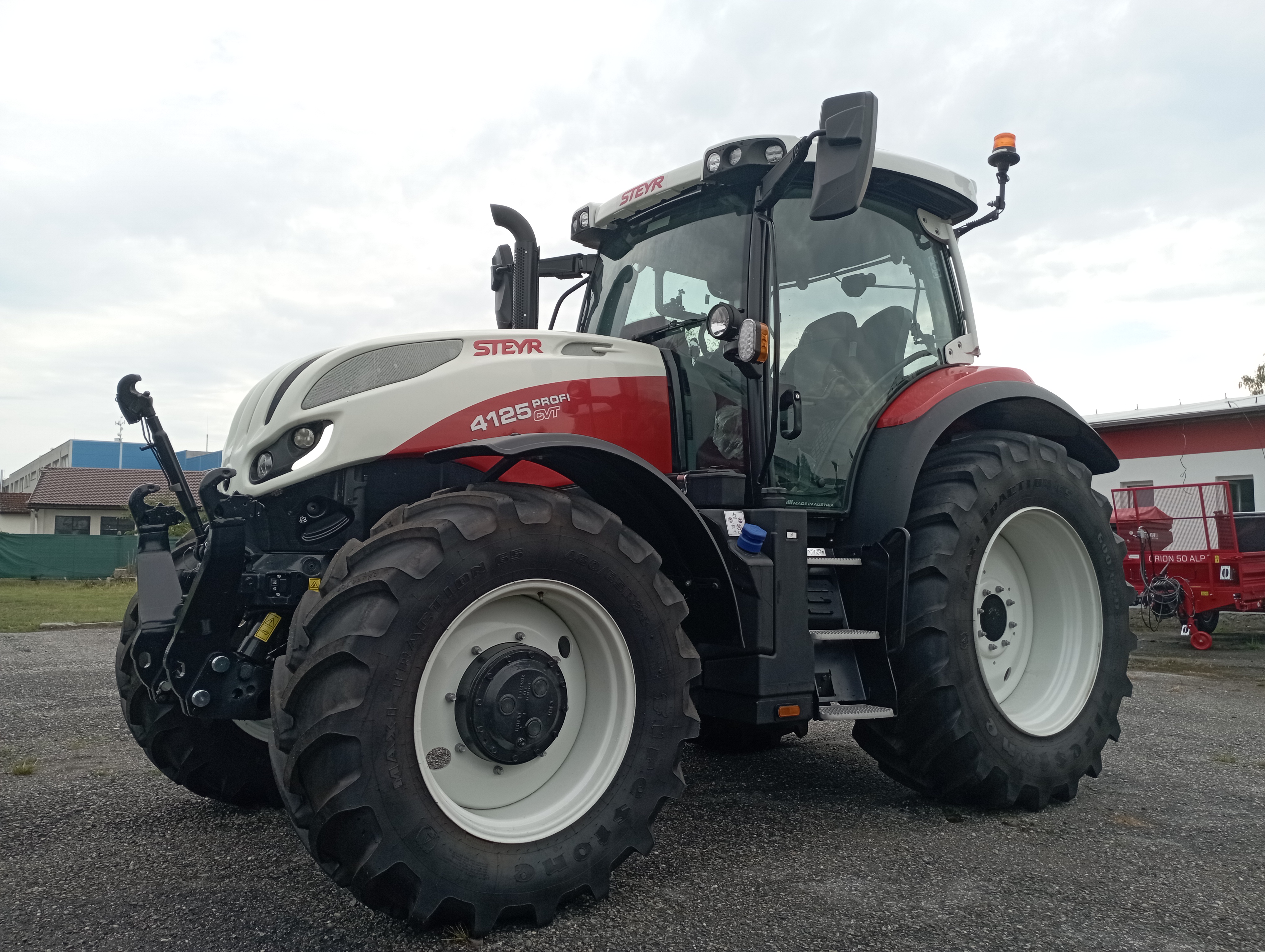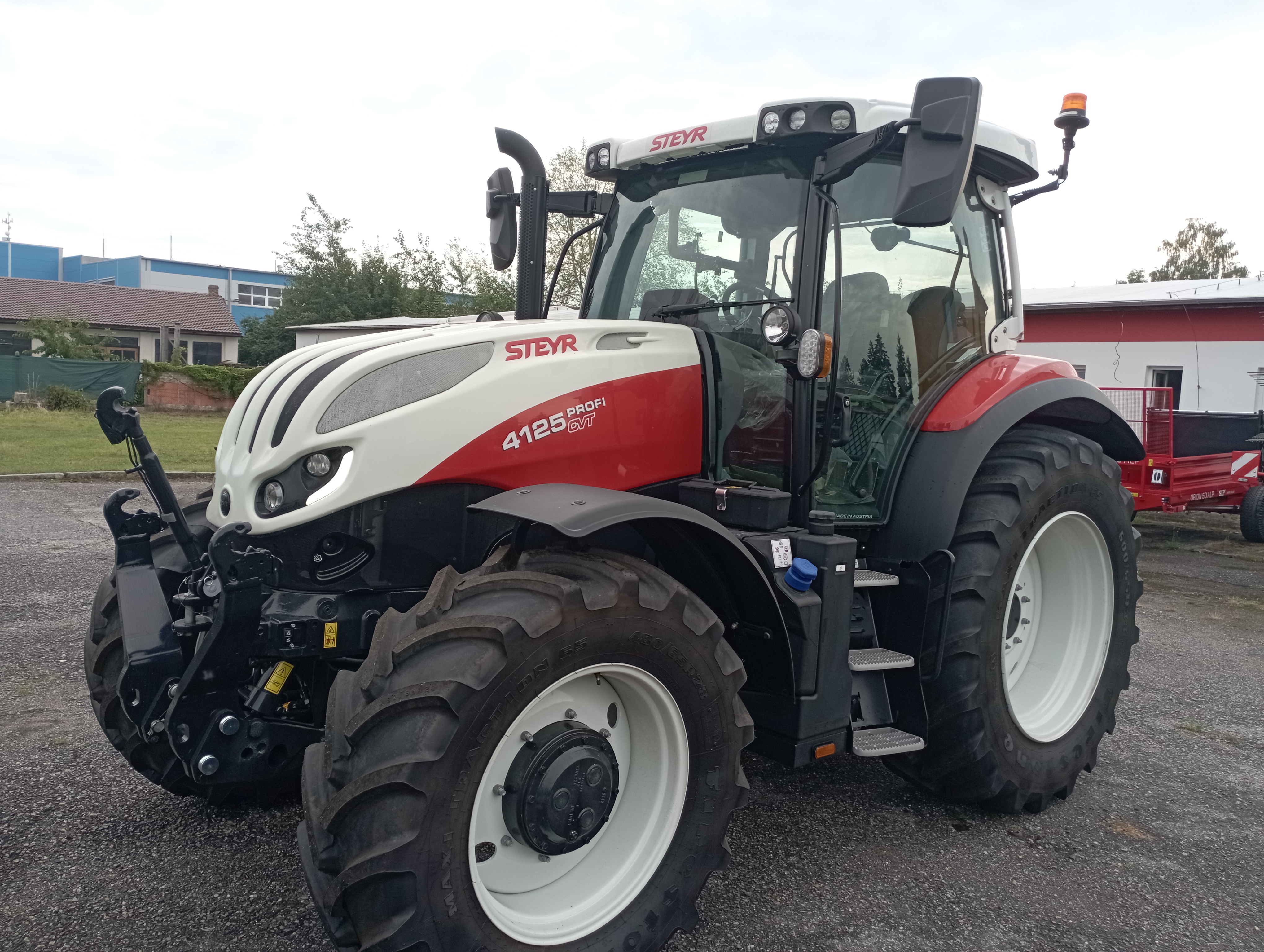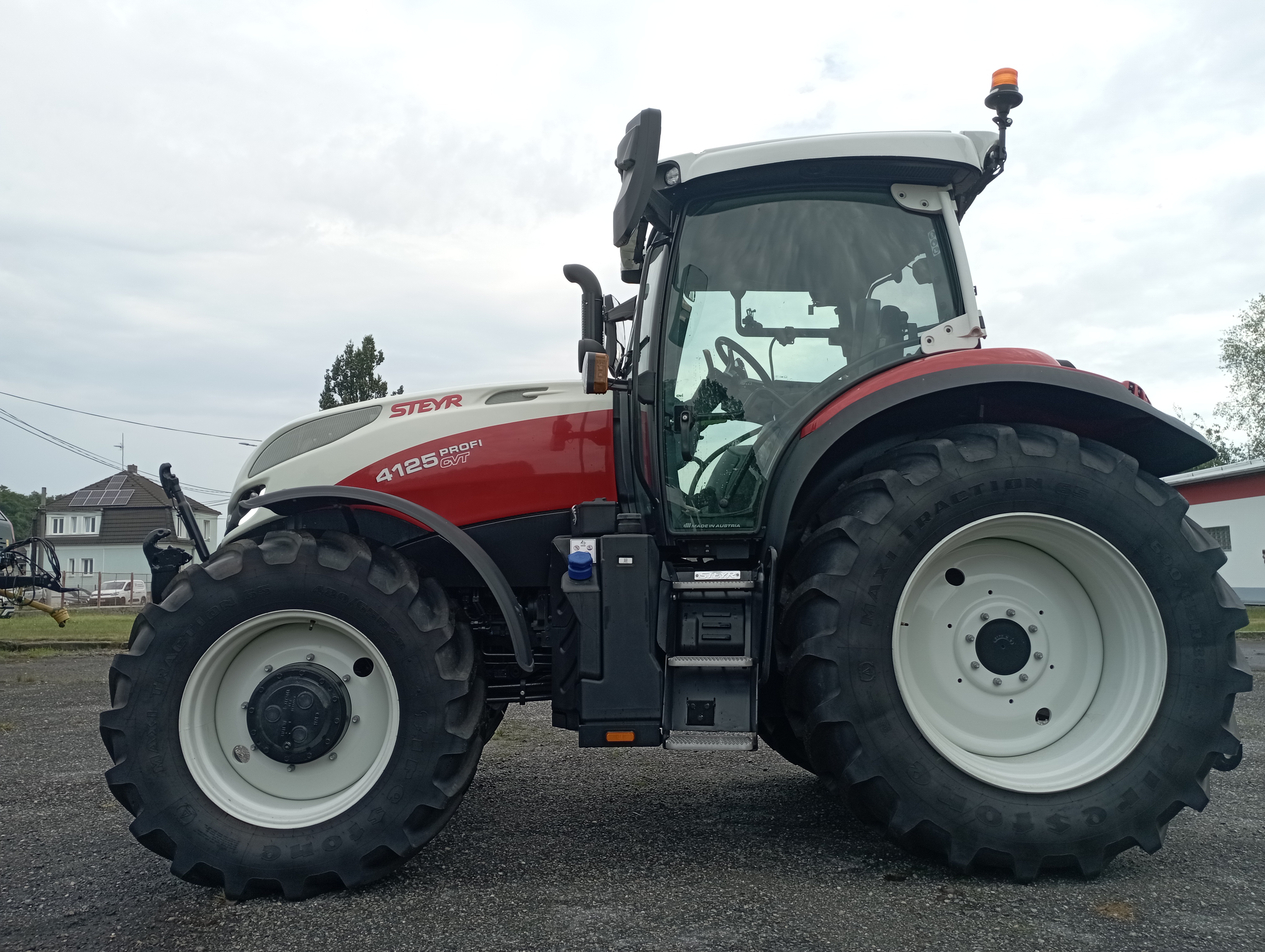 Komfortní odpružená kabina s manuální klimatizací (71 dB (A)), topením a filtrací nasávaného vzduchu, otevíratelné střešní okno, nízkofrekvenční sedadlo řidiče Dual motion s vyhříváním, bezpečnostním pásem a přepínačem v provedení s vyšší zádovou opěrkou a s logem STEYR, pohodlná sedačka spolujezdce s bezpečnostním pásem, nastavitelný sloupek řízení ve dvou směrech, digitální přístrojová deska na sloupku A (analogové/digitální ukazatele), topení a větrání nastavitelné ve 3 stupních, kožený volant prošívaný červenou nití a tkaný koberec STEYR, multifunkční loketní opěrka s panelem ICP a Multicontrollerem (změna tempomatu rychlosti, reverzace, zvedání ramen a ovládání el. vnějších okruhů), zásuvky na 12 V, další 8 A, 30 A a ISO 17612, rádio s Bluetooth a reproduktory, 2 teleskopická vnější zpětná zrcátka a jednou vnitřní zrcátko, 12 LED pracovních světel na kabině + 2 LED na kapotě motoru + alternativní světla pro jízdu po sil. komunikaci na sloupku A, přední stěrač s úhlem stírání 235° a zadní stěrač s ostřikovačem, sluneční clona na střešní a čelní sklo, tónované zadní okno se sluneční clonou, pokročilý držák externích monitorů na pravé straně se dvěmi USB zásuvkami a držákem RAM na mobil, chladící box před volantem, držák registrační značky ve střeše pro vysokou střechu, elektronický odpojovač akumulátoru v kabině i u nástupních schodů, LED maják na levé straně, schránka na nářadí, souvraťový management EASY TRONIC II. |